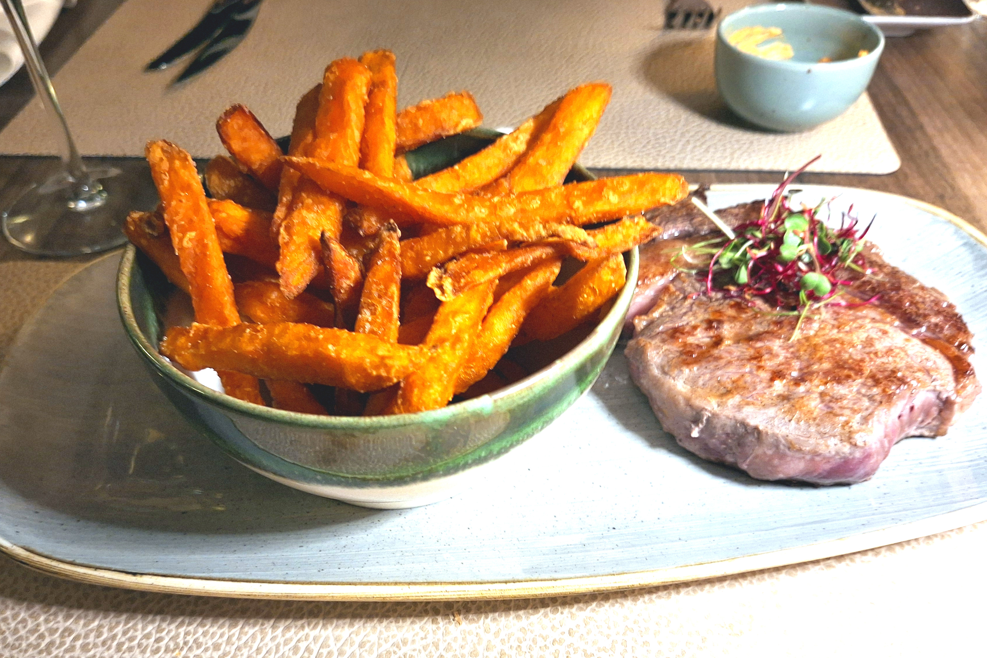 Das Filet vom Holsteiner Rind, medium rare gegart, ruhte neben cremigem Kartoffelpüree – ein Moment purer Klarheit, in dem jedes Aroma seine Tiefe entfaltete. Ein Glas Beaujolais verlieh dem Gang fruchtige Leichtigkeit.