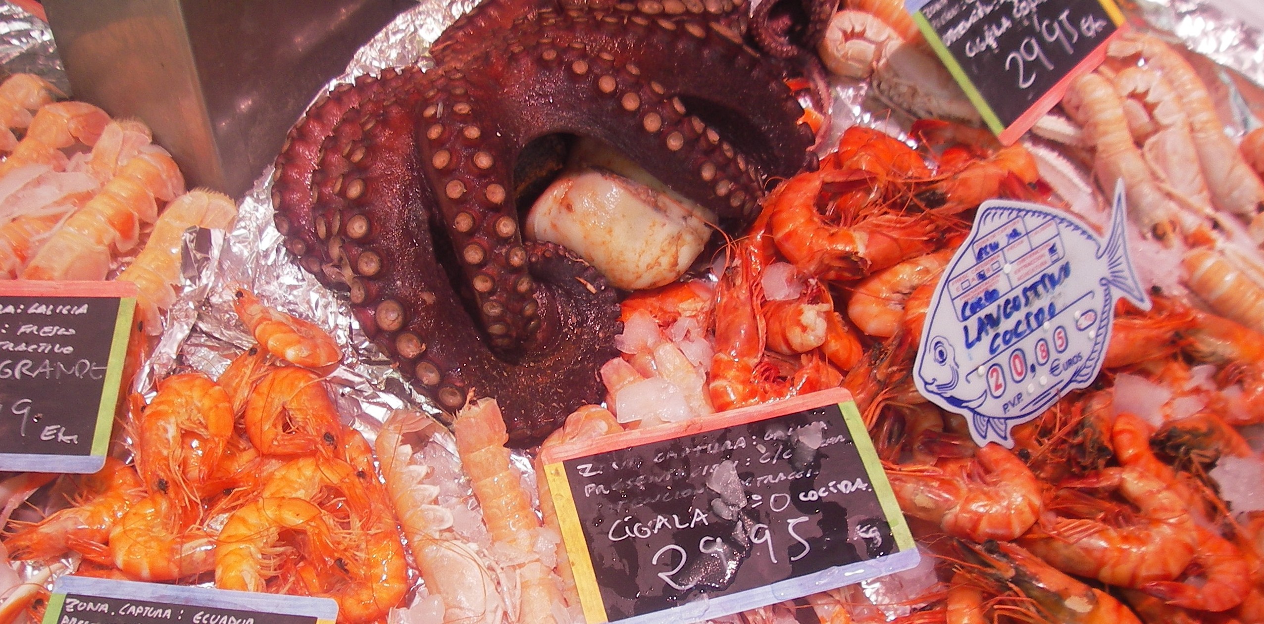 Ein schöner Ort um Lebensmittel zu kaufen oder sich direkt vor Ort bewirten zu lassen. Über 30 Stände wetteifern um die Gunst der Besucher. Für den täglichen Einkauf nicht geeignet, da die Preise, auch für Hauptstadt Verhältnisse, doch sehr hoch sind. An den verschiedenen Ständen, wie Obst und Gemüse, Fischhändler, Schinken, Wein, Backwaren haben wir eingekauft und die in der Mitte der Halle aufgestellten Tische und Stühle belegt, um vor Ort die tollen Produkte zu verzehren.