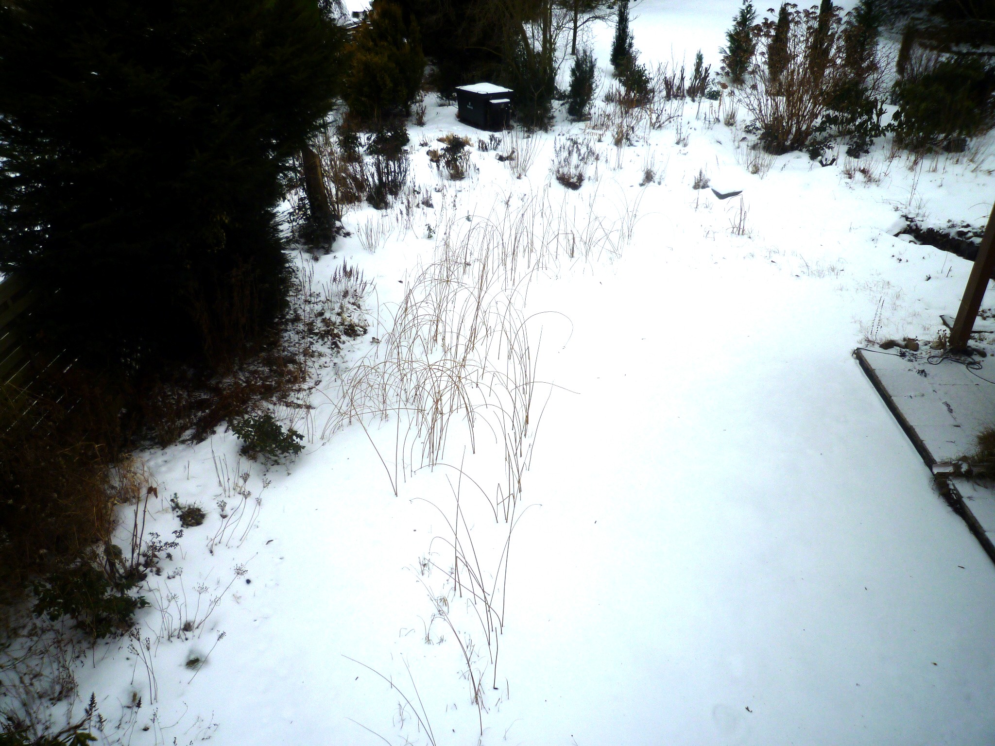 Der Winter hat den Garten weiter voll im Griff. Leichter Schneefall und minus 4°