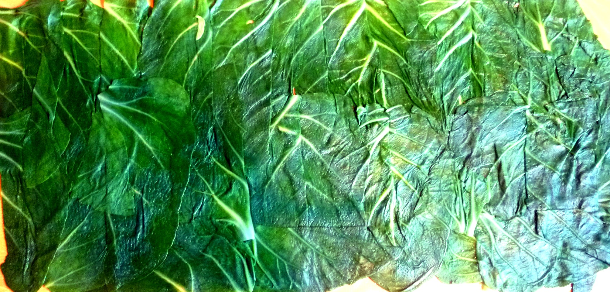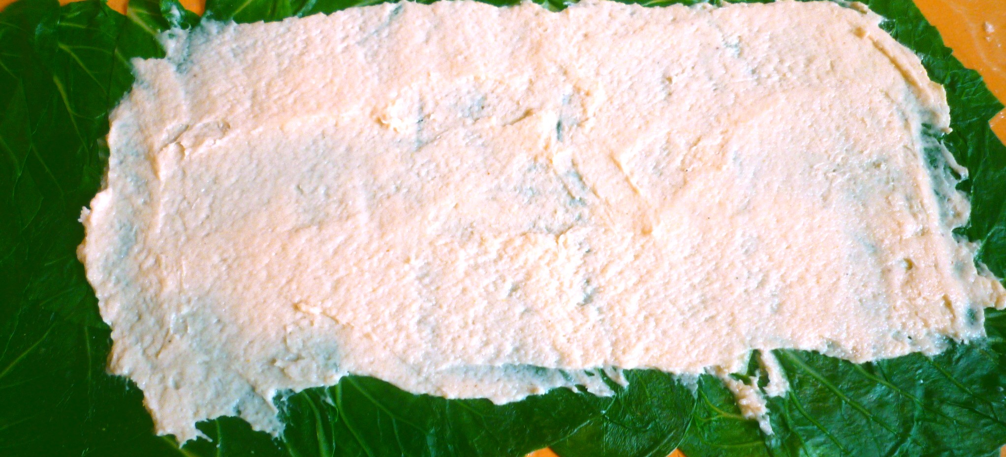 Mangoldblätter von den Stielen schneiden, in reichlich Salzwasser blanchieren und in Eiswasser abschrecken. Auf einem Küchentuch ausbreiten und trocknen. Die Blätter so legen, dass die Außenseite zum Tuch liegen. Die Blätter leicht salzen und pfeffern.