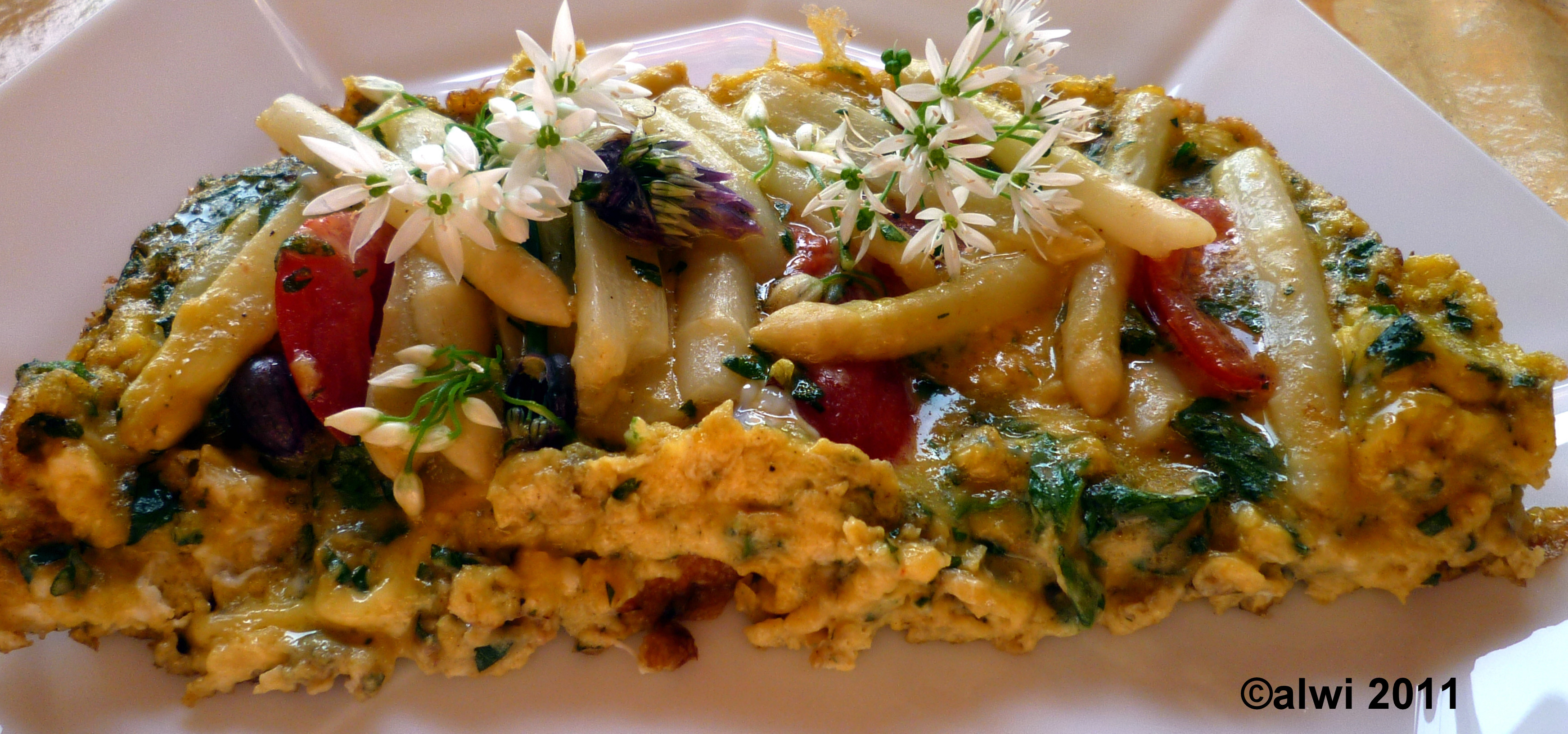 Veröffentlicht am 2. Mai 2011Omelette Omelette mit Spargel Omelette mit Wildkräutern, Tomaten und Spargel.