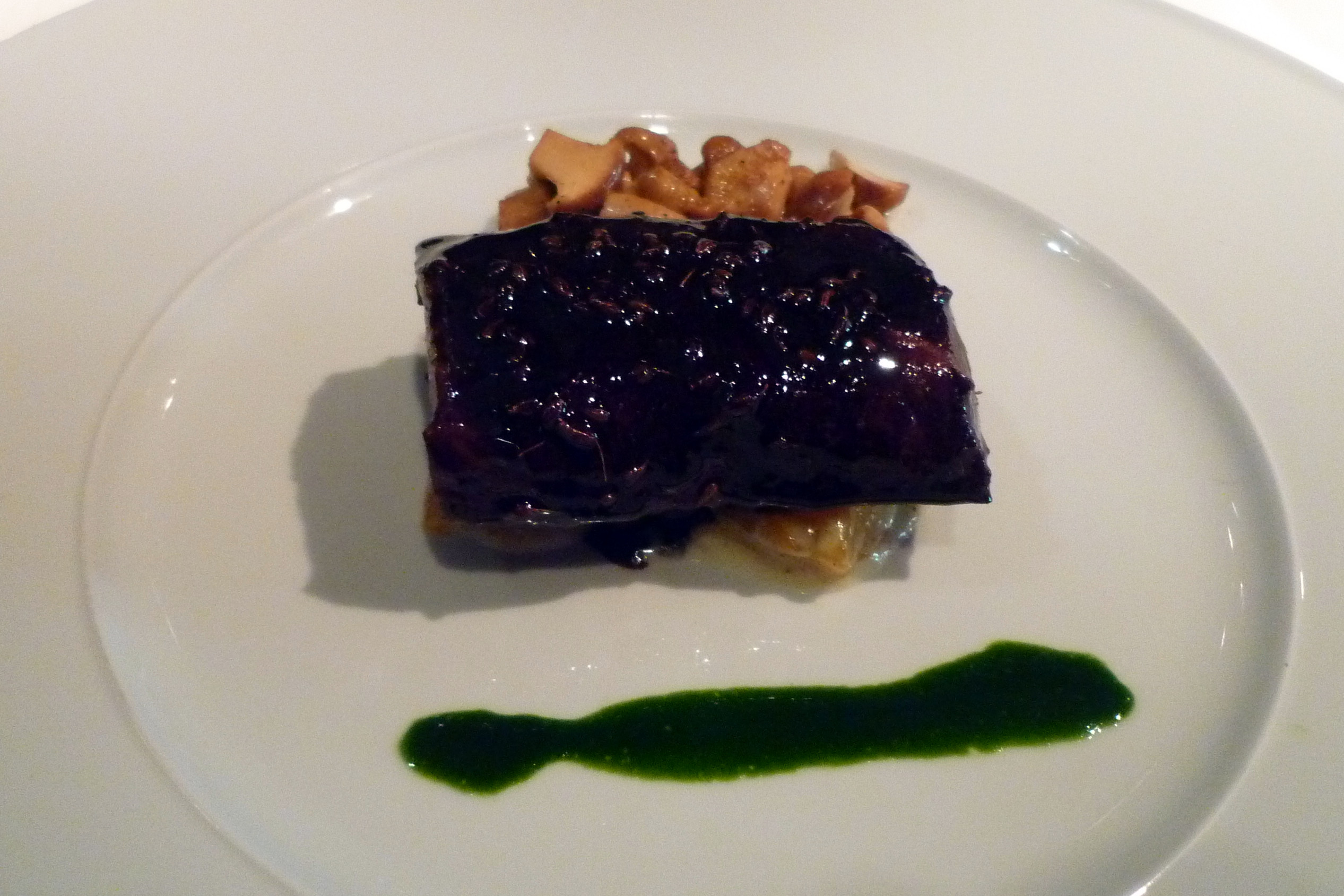 Das Rehfilet auf den Punkt gegart lag auf einem Bett von Aprikosen. Dazu bissfeste Pilze und eine Schnittlauchsauce.