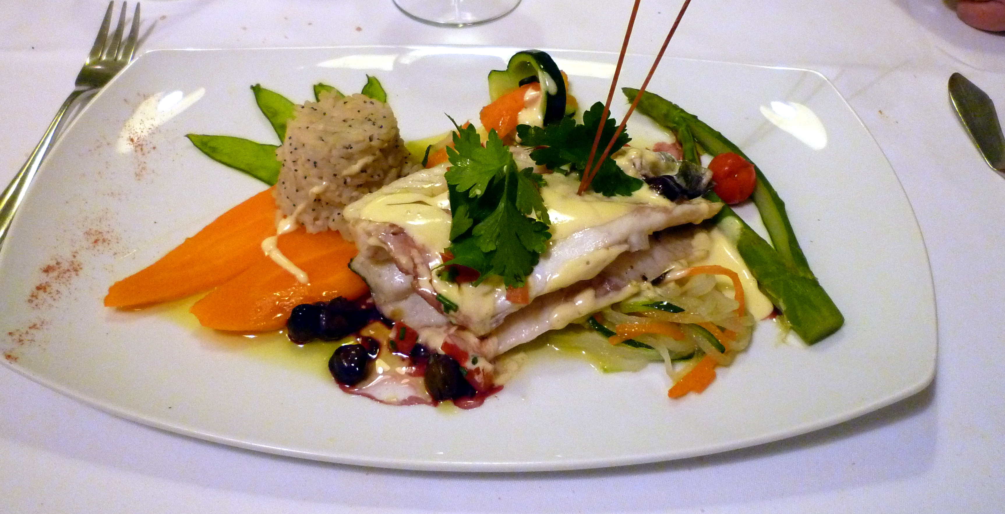 Veröffentlicht am 29. Oktober 201129. Oktober 2011Abendessen la Table Viroise Gratin de vertiable Andouille de Vire sur lit de pommes fruits au sabayon et camembert Bar Bar levé en filet et sa vinaigrette tiède aux câpres Fromage Fromage de Normandie Dessert Assiette gourmandise du Patissier “ Plaisier et saveur“
