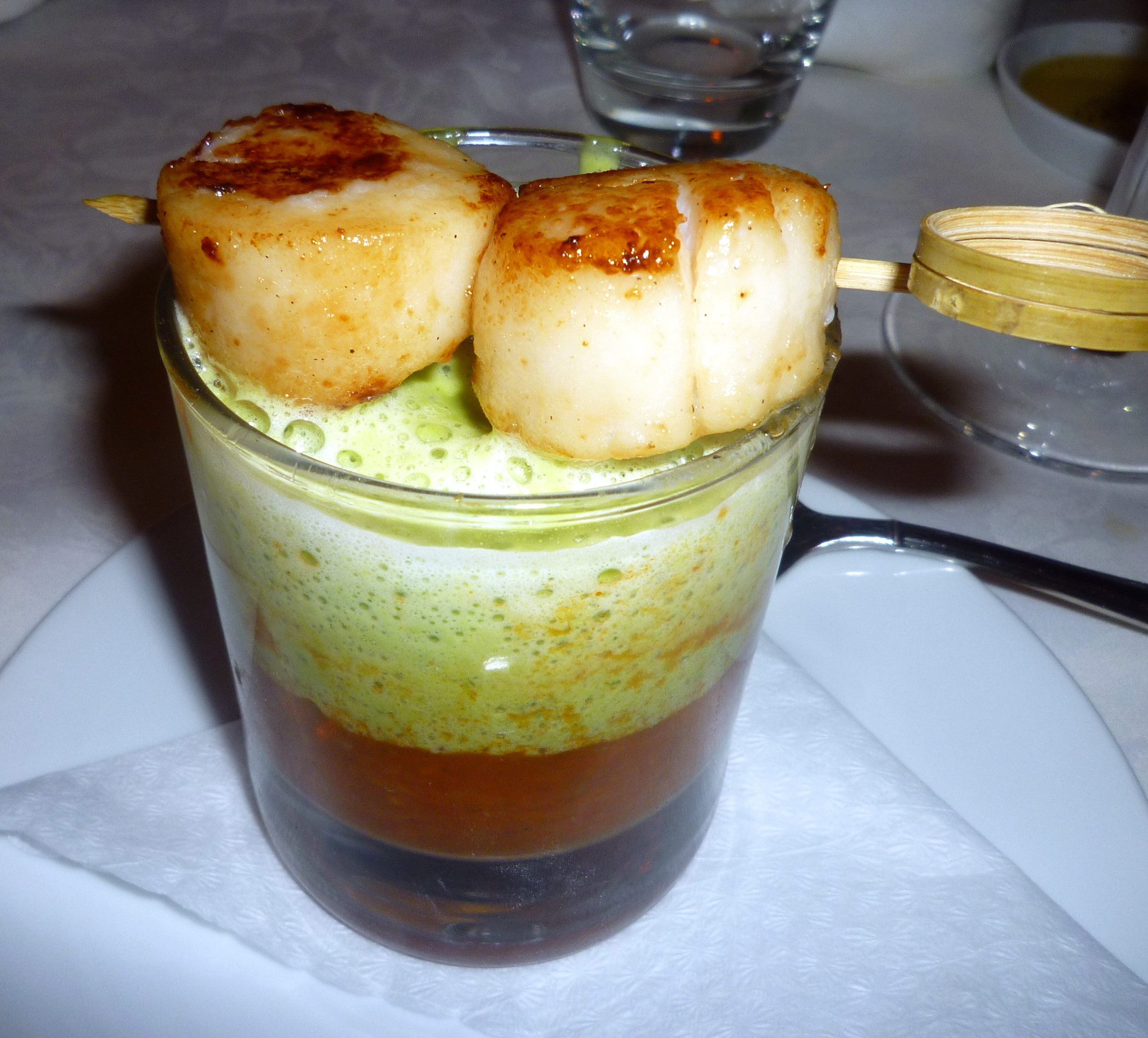 Unter einer Kuppel, in einem vier geschossigen Einkaufszentrum, ist das Restaurant untergebracht. Die Tische, weiß eingedeckt mit Stoffservietten, stehen auf einer Art Piazza. Getrennt vom übrigen Publikumsverkehr wird das ganze durch gläserne Schränke. In diesen stehen geleerte Weinflaschen. Bei voll besetztem Haus ist die Geräuschkulisse doch recht hoch, Gemütlichkeit kommt bestimmt nicht auf, ist vielleicht von den Inhabern auch gar nicht gewollt.