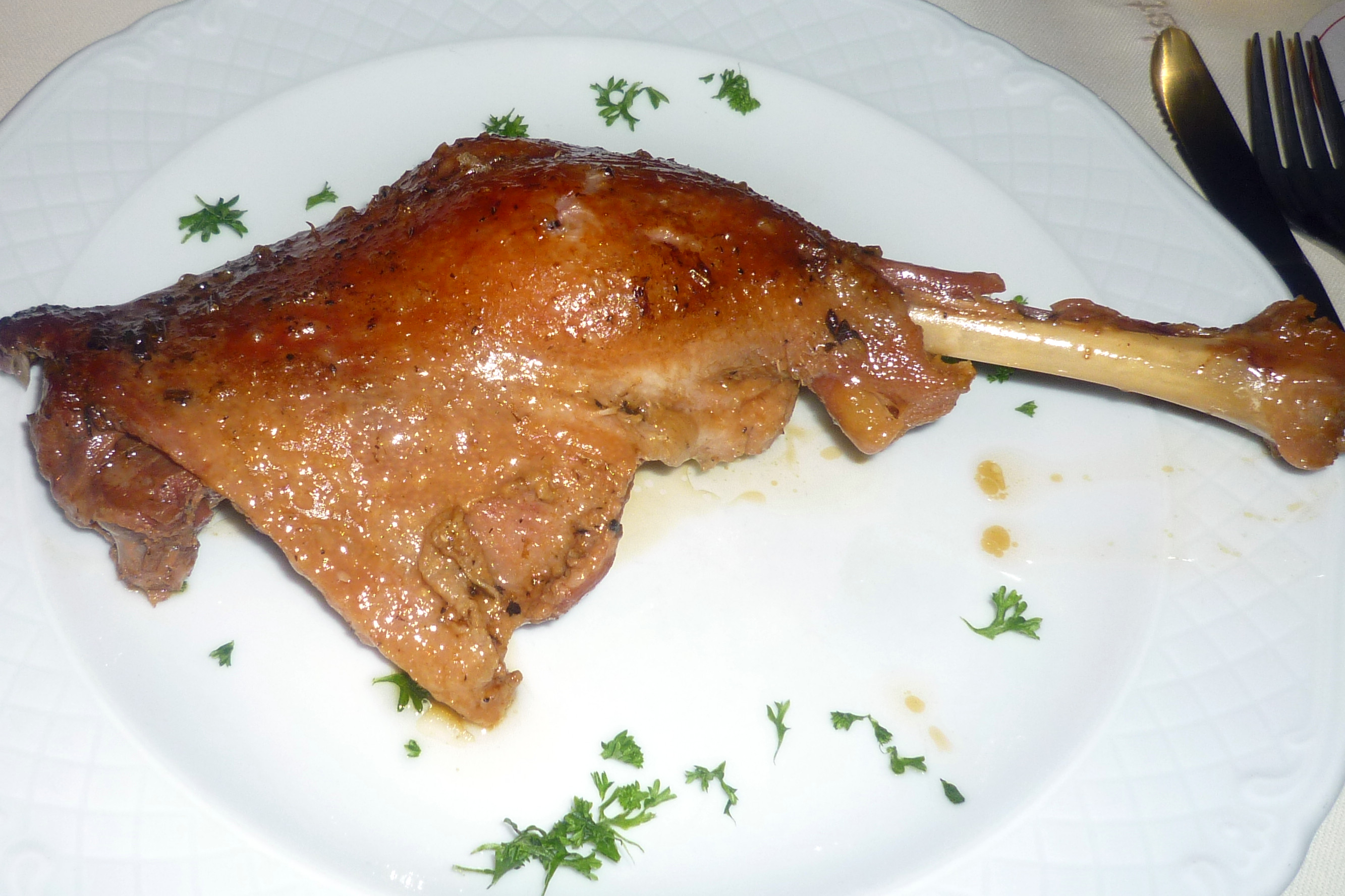 Die Teile der Gans wurden in zwei Gängen serviert. Als erstes die Keule.