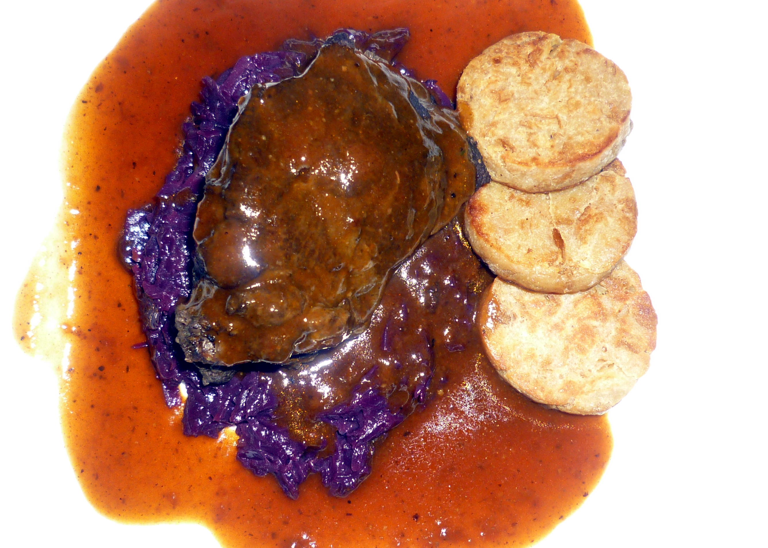 geschmorte Ochsenbacke, Serviettenknödel und Rotkohl 14,50 €