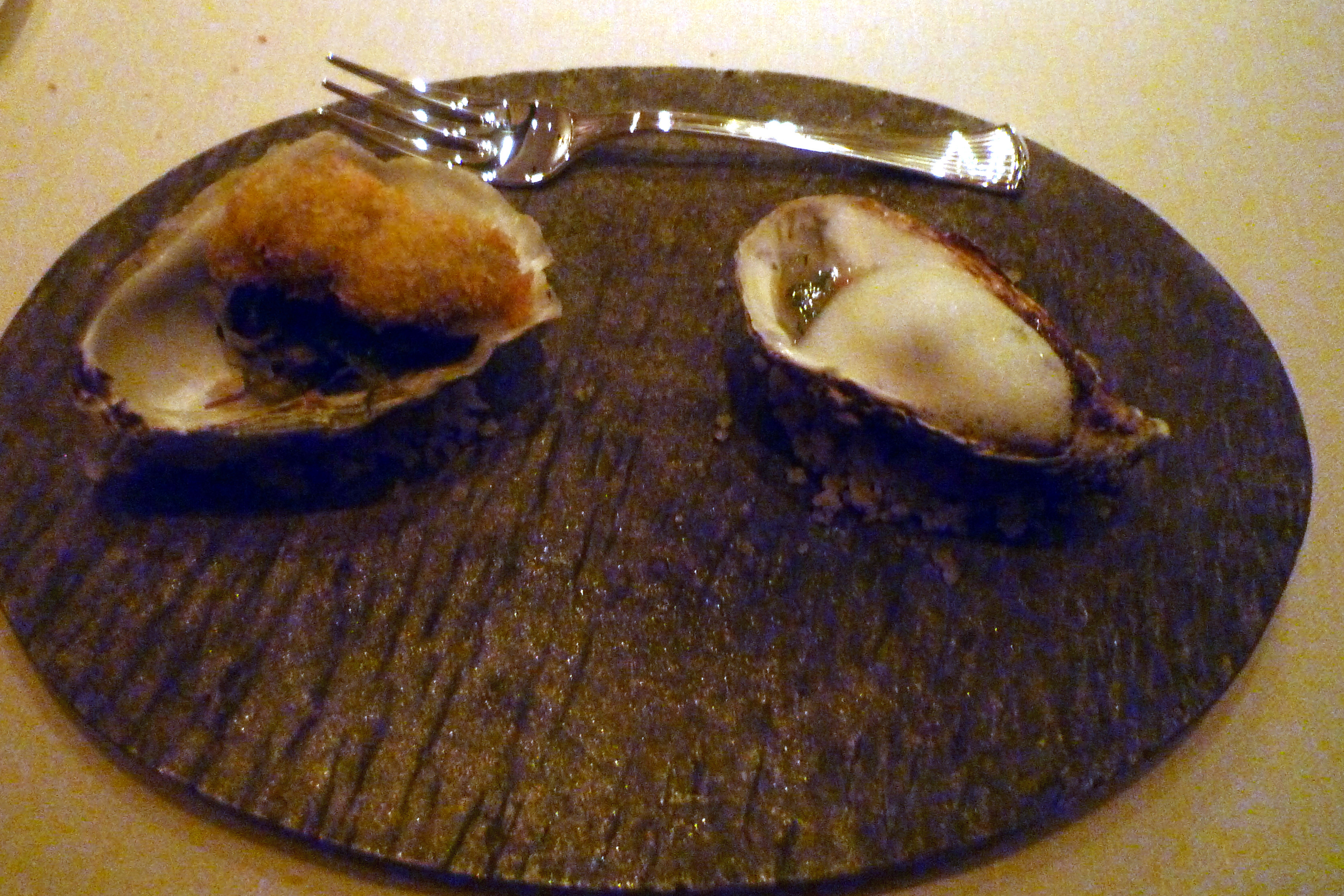 Überzeugend die überbackene Auster mit Algen, die im eigenen Saft gelierte Auster hätte ich allerdings gern durch eine frische Auster ersetzt gehabt