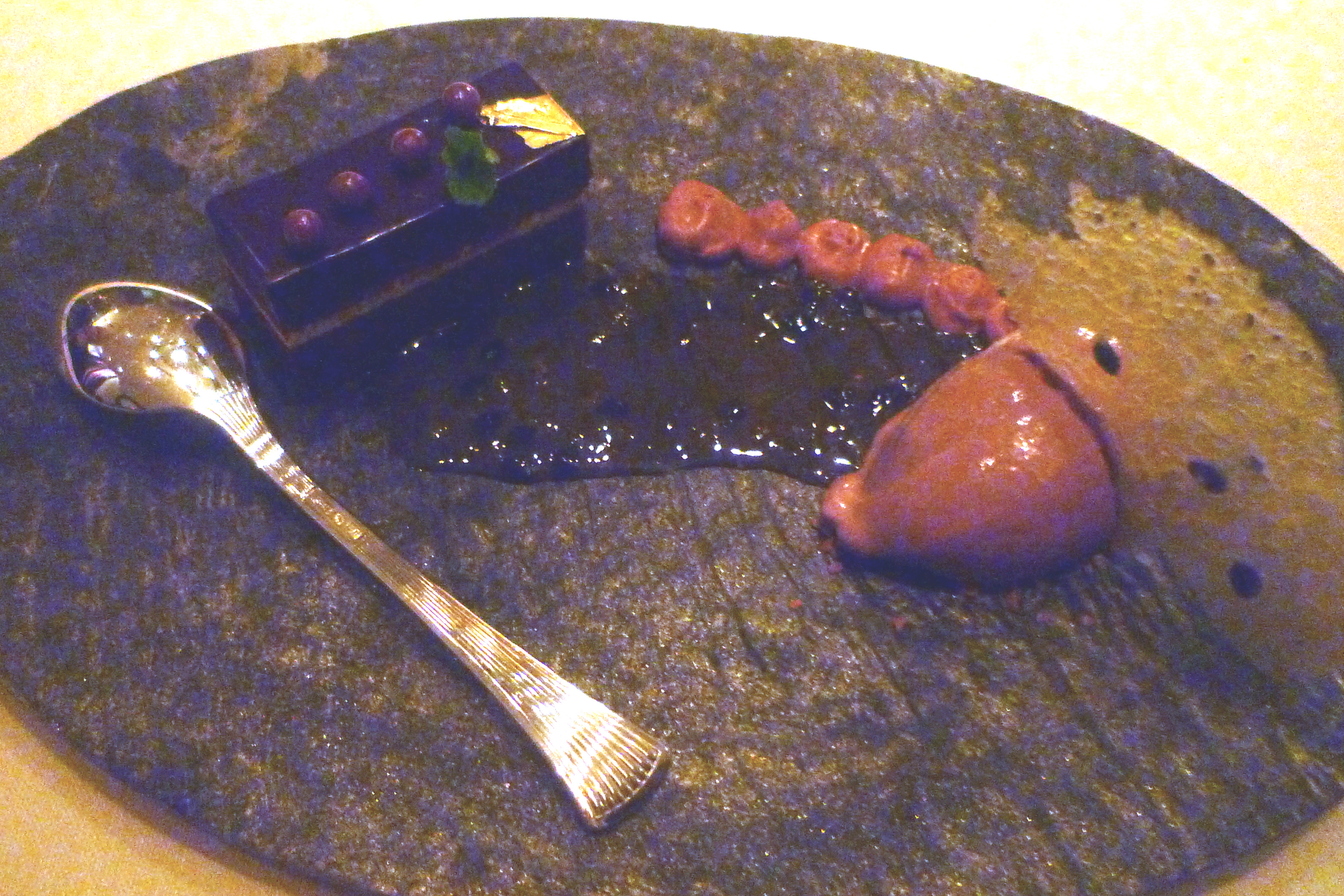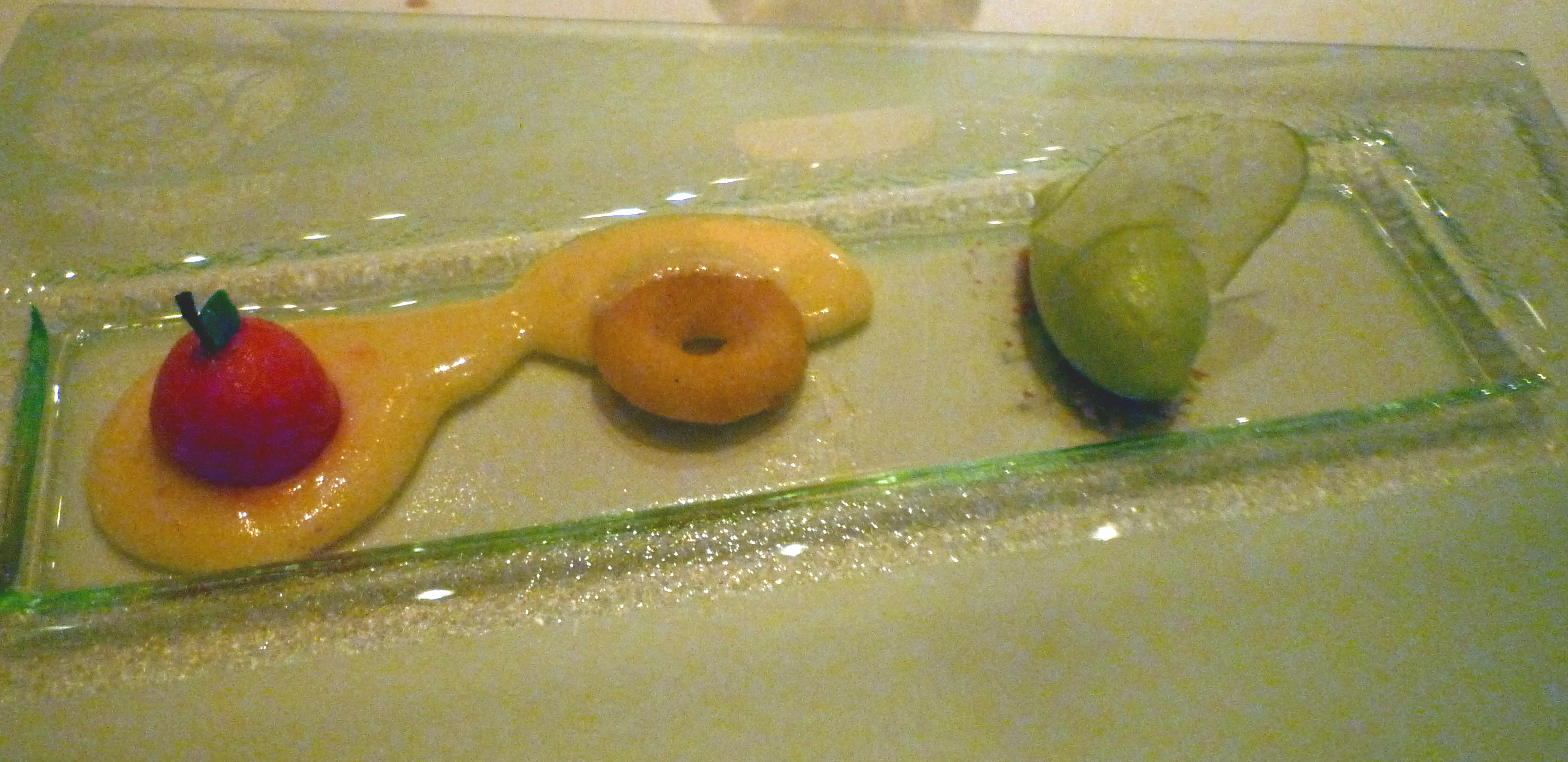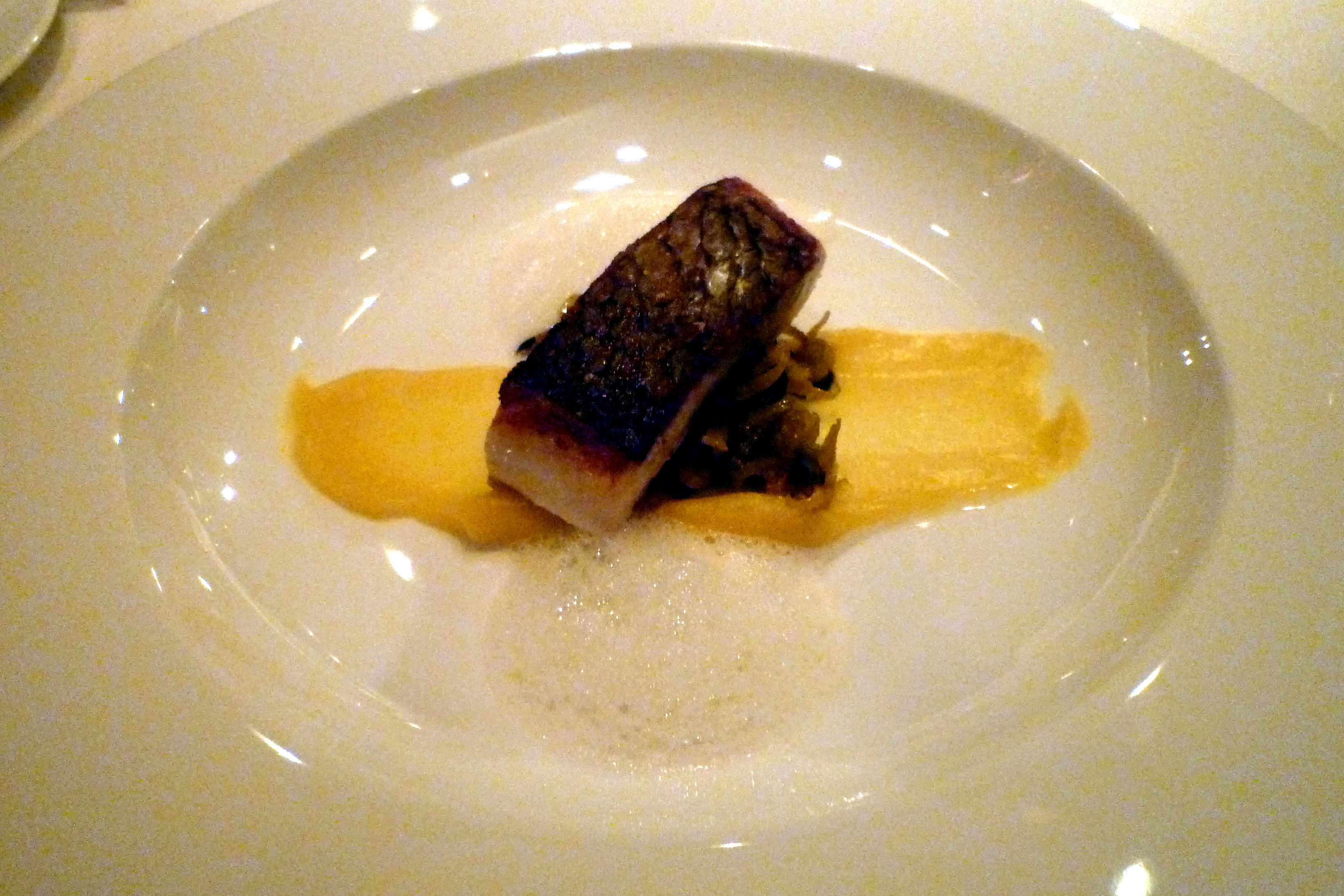 Der nächste Höhepunkt. Ein Wolfsbarsch auf der Haut gebraten und noch leicht glasig, dazu eine Creme die nach den Früchten des Meeres schmeckte. Leider kam der Fenchelgeschmack beim Ragout nicht richtig zur Geltung.