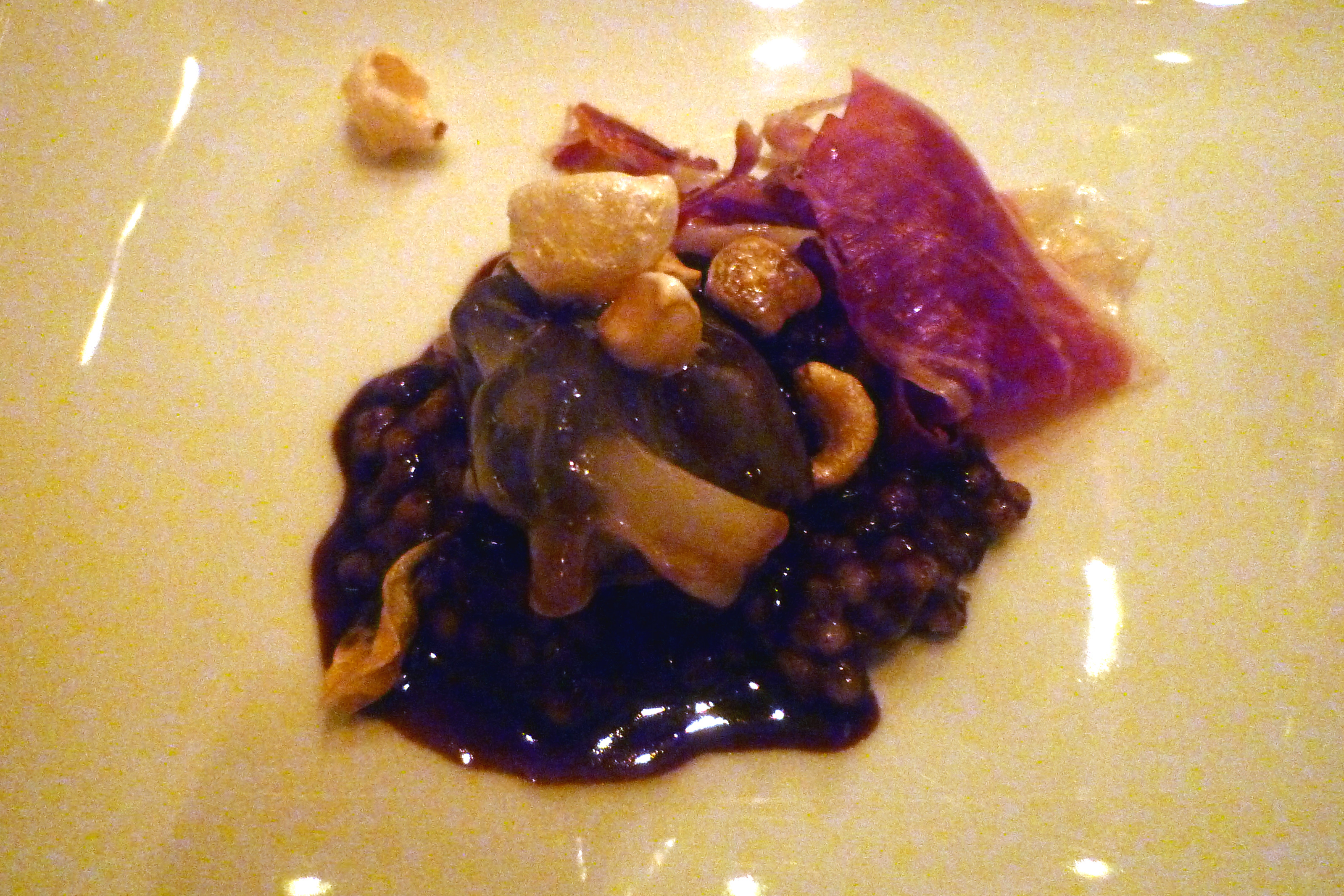 Ein sehr schmackhaftes aber doch rustikales Gericht. Das Bäckchen war sehr gut gegart, dazu Popcorn von der Schweinehaut.