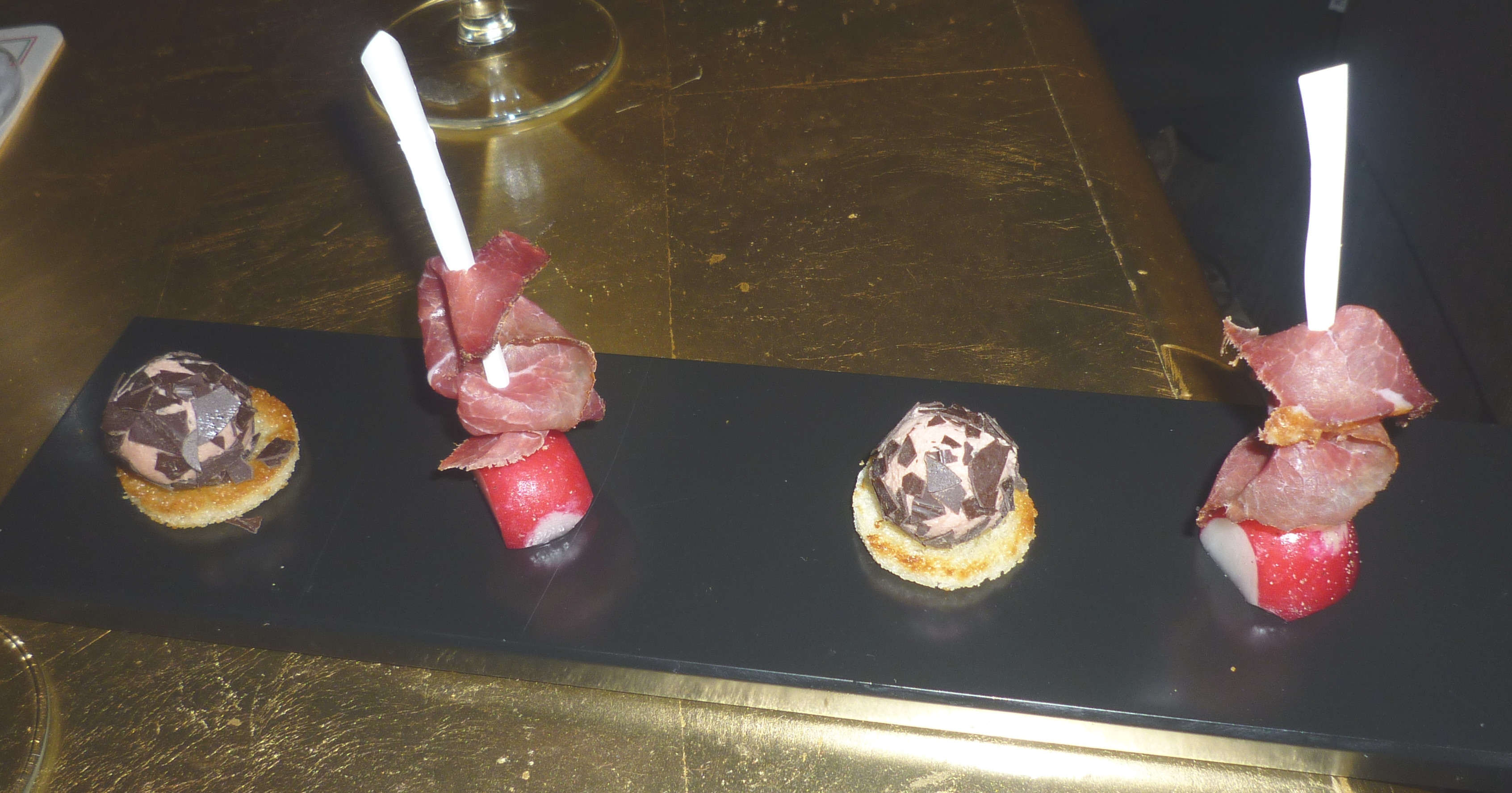 Chok OX – Leberpraline mit Bitterschokolade und Rhöner Landschinken mit Radieschen