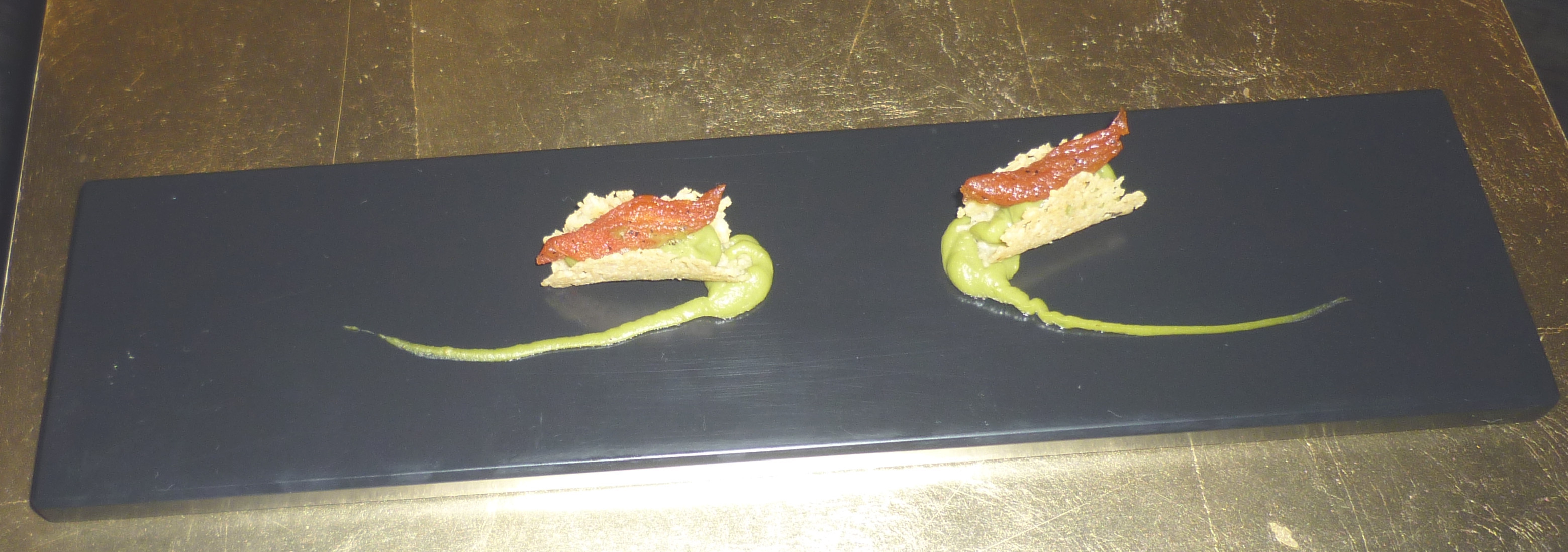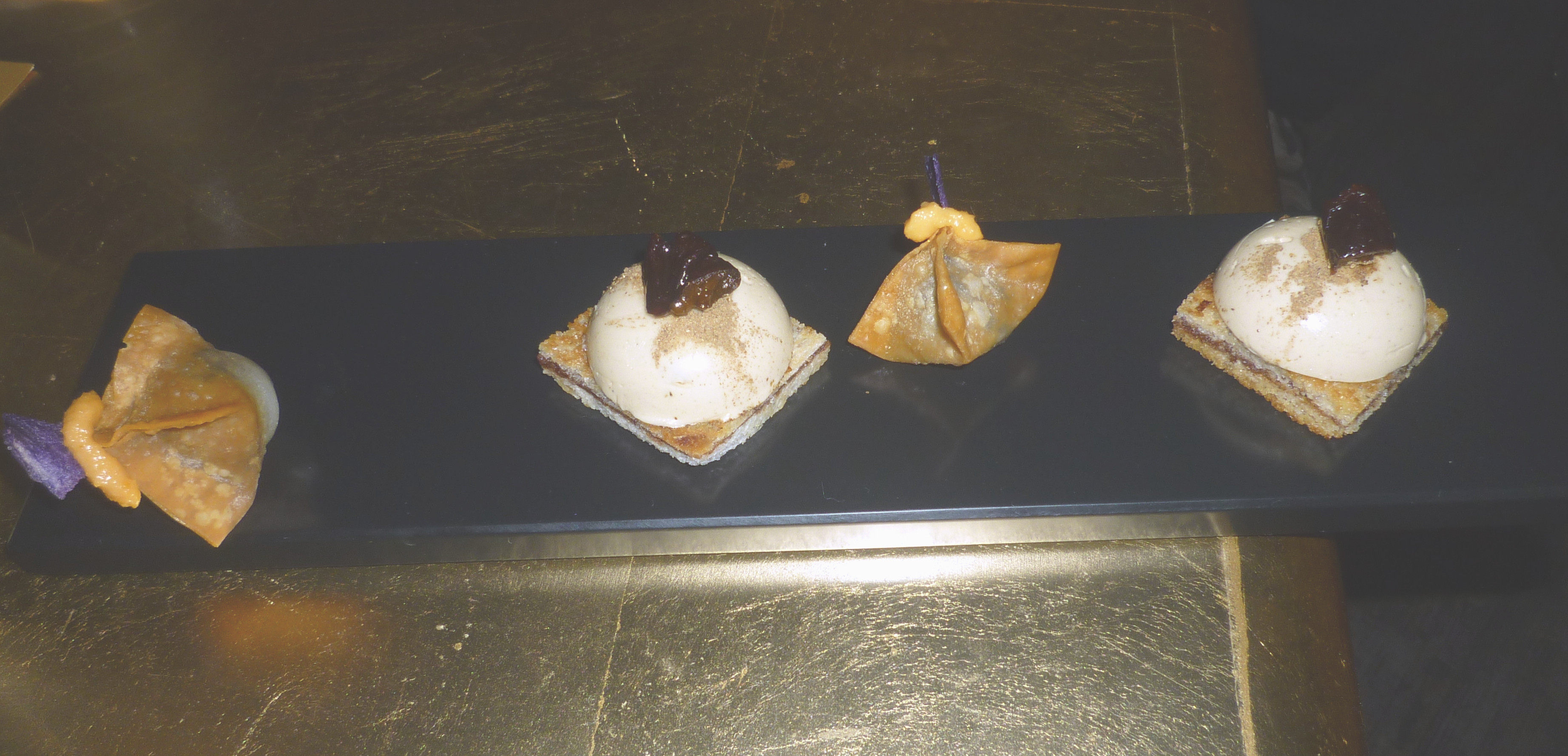Entenleber Drops mit „5 Gewürze“ Brot sowie knuspriger Blutwurst Wan Tann .