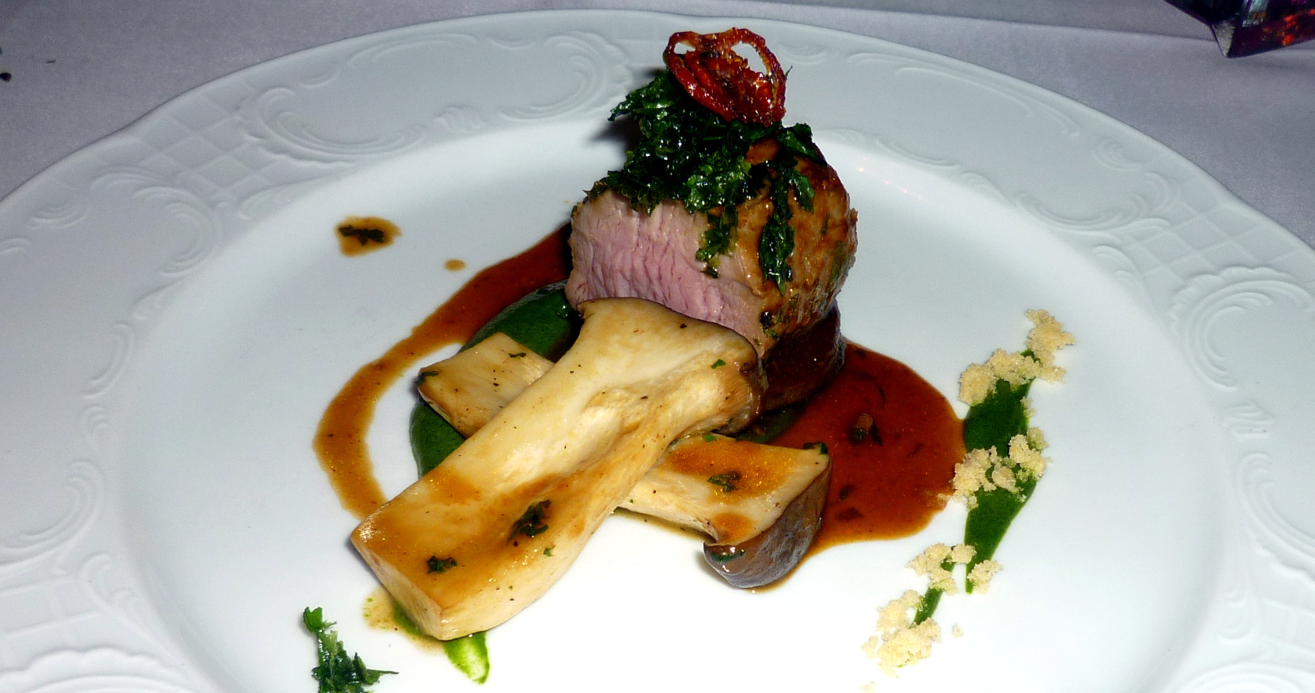 Sechster Gang: Milchkalbsfilet saus vide gegart – Tabak Petersilie – Kräutersaitling