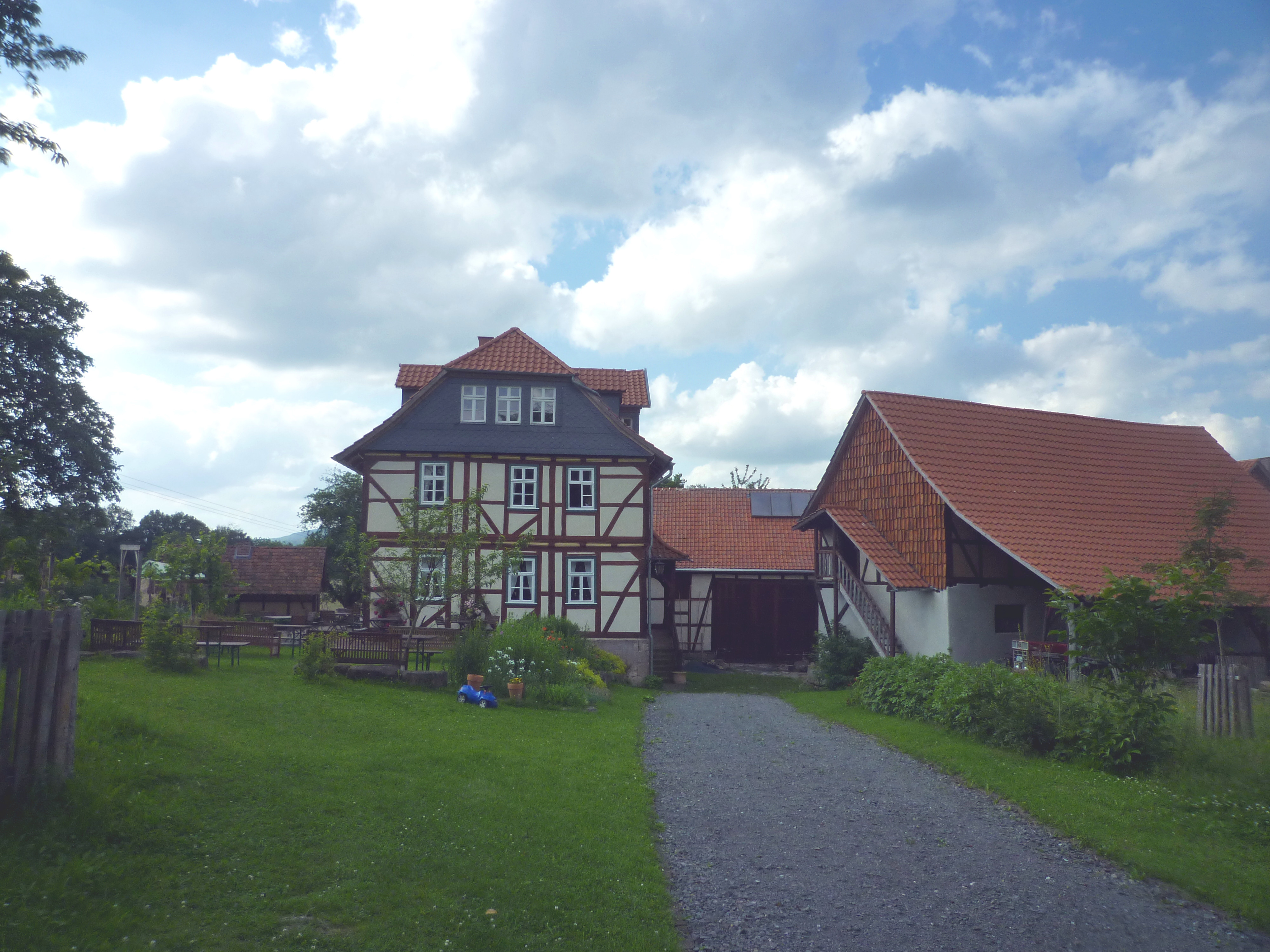 Der zweite Kochabend 2012 von Slow Food Nordhessen fand diesmal auf dem Hofgut Sickenberg statt. Für mich war die erste Frage, wo liegt dieses Sickenberg überhaupt. Vor der Wende lag der Hof unmittelbar an der innerdeutschen Grenze innerhalb des 500 Meter breiten Grenzstreifens und eigentlich ist es ein Wunder, dass er überhaupt noch existiert. Heute eigentlich mitten in Deutschland. Dabei ist die Anfahrt von Kassel aus kommend schon recht abenteuerlich. Über die B 27 bis Helsa und dann bis Trubenhausen ist noch als nochmal zu bezeichnen. Dann führt die Straße in die nordhessischen Berge. Kurz hinter Trubenhausen eine 14% Steigung durch den Wald mit vielen Kehren. Dann geht es mit 13% Gefälle in Richtung Kammerbach, um anschließend wieder mit 14% Steigung und 10% Gefälle in Richtung Bad Sooden Allendorf zu fahren. Von hier aus in Richtung Grenzmuseum Schiffelborn geht es wieder in Kehren und schmalen Straßen bergauf. Dann endlich sehe ich Sickenberg. Ein Ort, wo die Zeit anscheinend stehen geblieben ist. Direkt am Ortseingang dann der ca. 200 Jahre alte Vierseitenhof. Hier hat Kristina Bauer, eine ausgebildete Agraringenieurin, ihren großen Traum verwirklicht. Einen alten Bauernhof zu erwerben, eine vielfältige ökologische Landwirtschaft aufzubauen und die traditionellen Erzeugnisse direkt zu vermarkten.