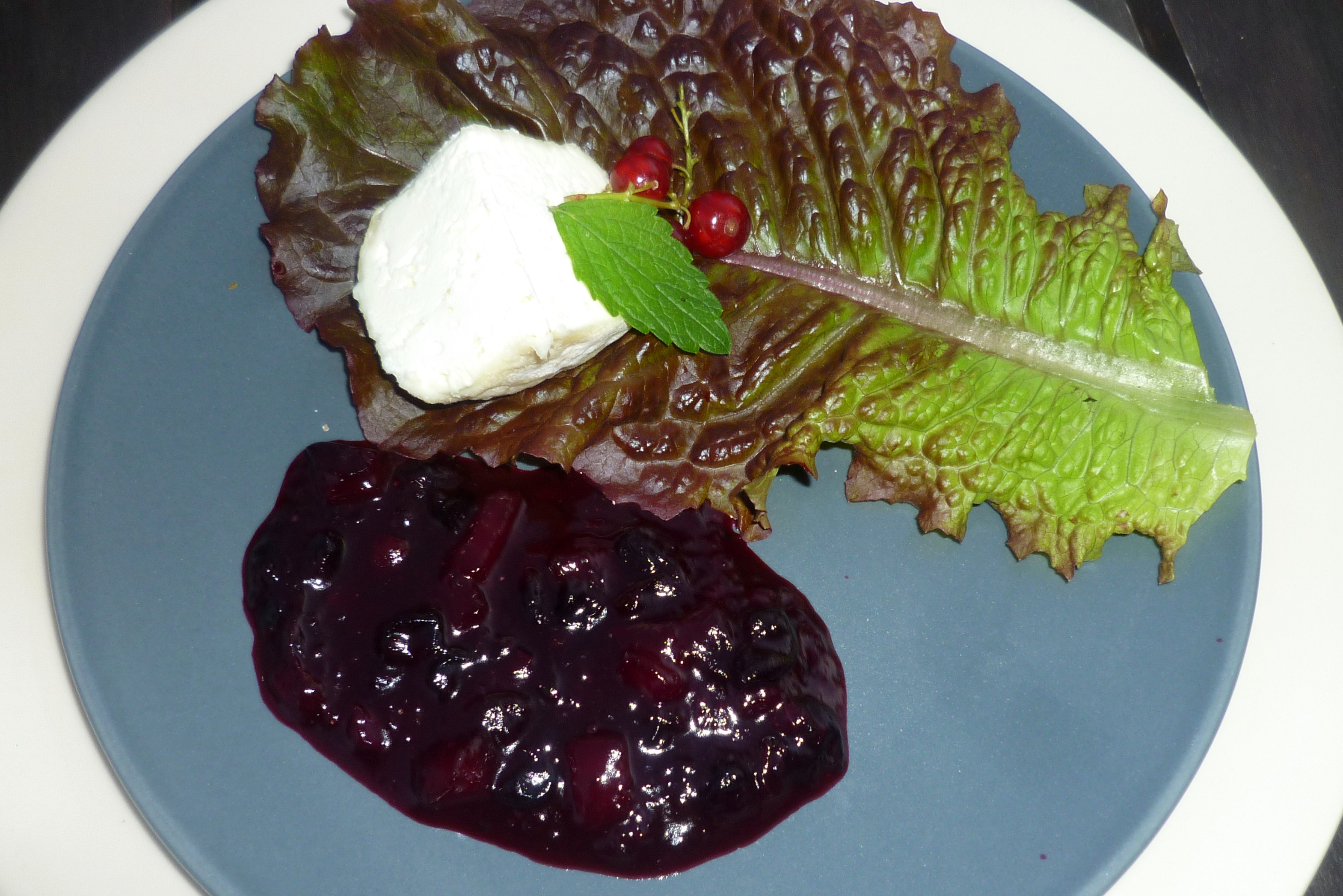 Chutney von schwarzen Johannisbeeren und Ziegenkäse