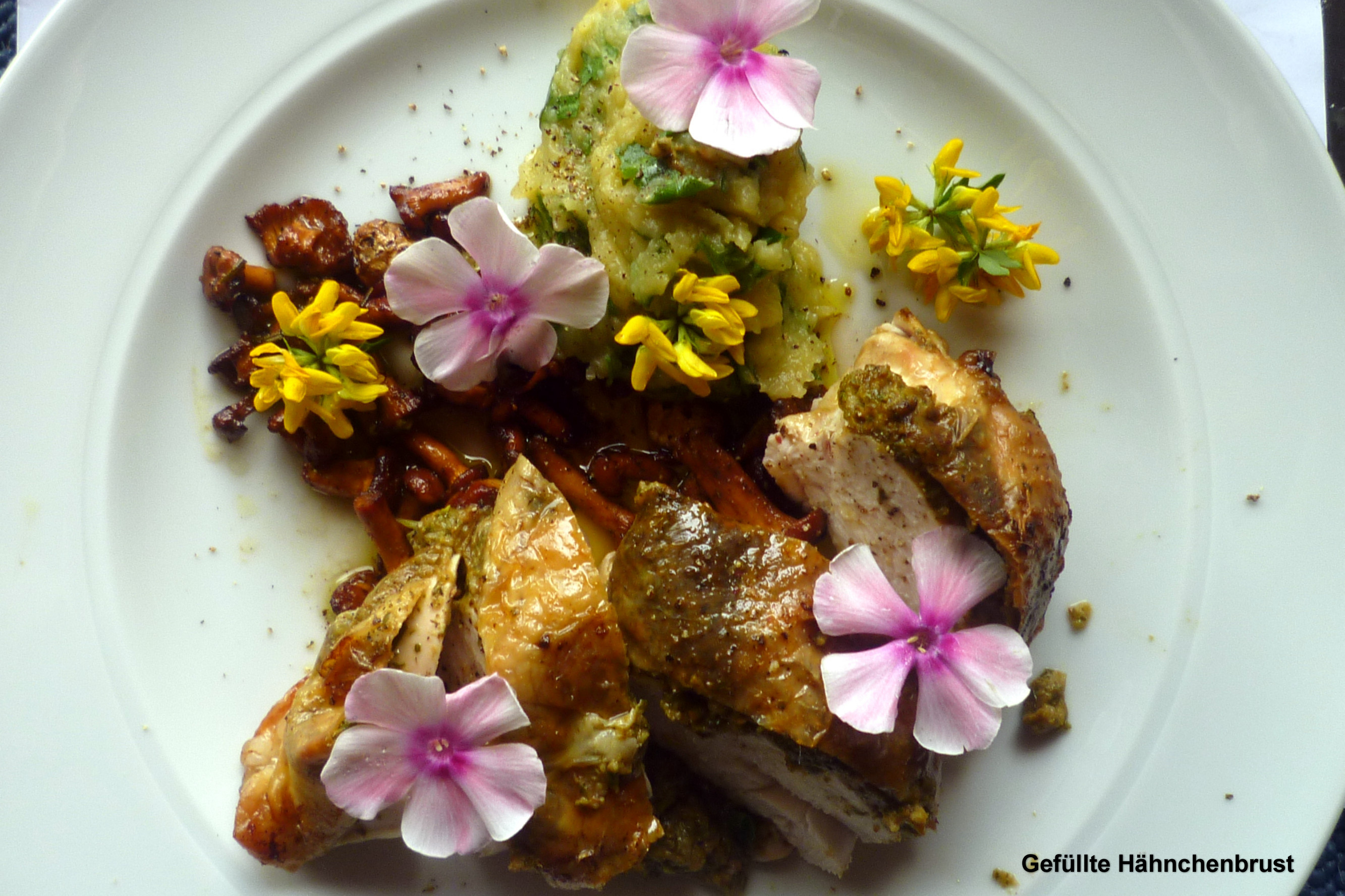 Gefüllte Hähnchenbrust mit Pfifferlingen und Kartoffel-Rauke Püree
