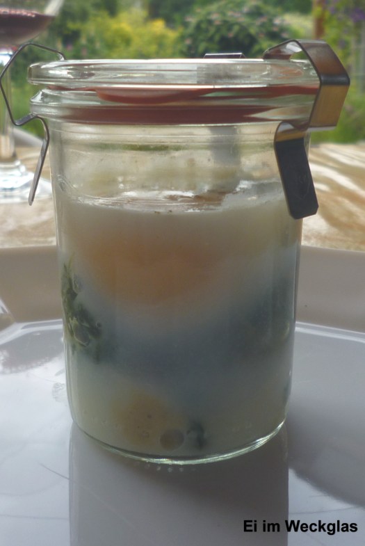 Ei im Weckglas mit Kartoffelpüree und Rahmspinat