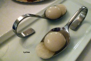 Ein besonderer „Hingucker“ ist die von Gabriele Steinheuer gestaltete Speisekarte. Mit schwungvoller Schrift sind zwei Menüs mit ja 7 Gängen aufgeführt. Dazu kommen kleine Appetizer, Amuse-Gueule, Pre-Dessert und Patisseries.