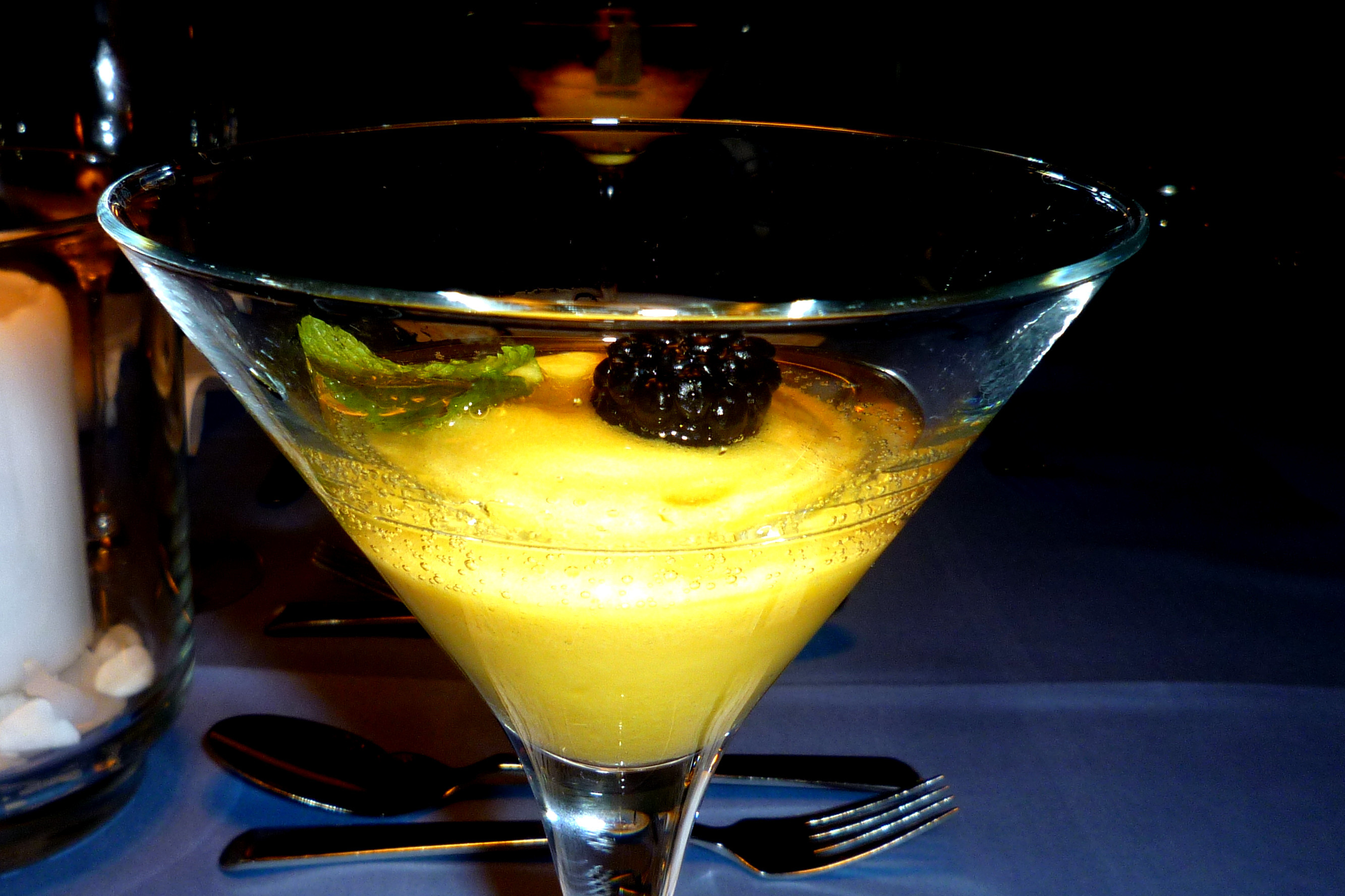 Zum Auftakt gab es Lachstatar, Oliventapenade, Bärlauchcreme und Butter sowie zwei verschiedene Sorten Brot. Hier ist auch die einzige Kritik des Abends zu vermerken. Die Butter viel zu fest und das Brot zu trocken. Als Aperitif gab es einen fruchtigen, alkoholfreien Cocktail.