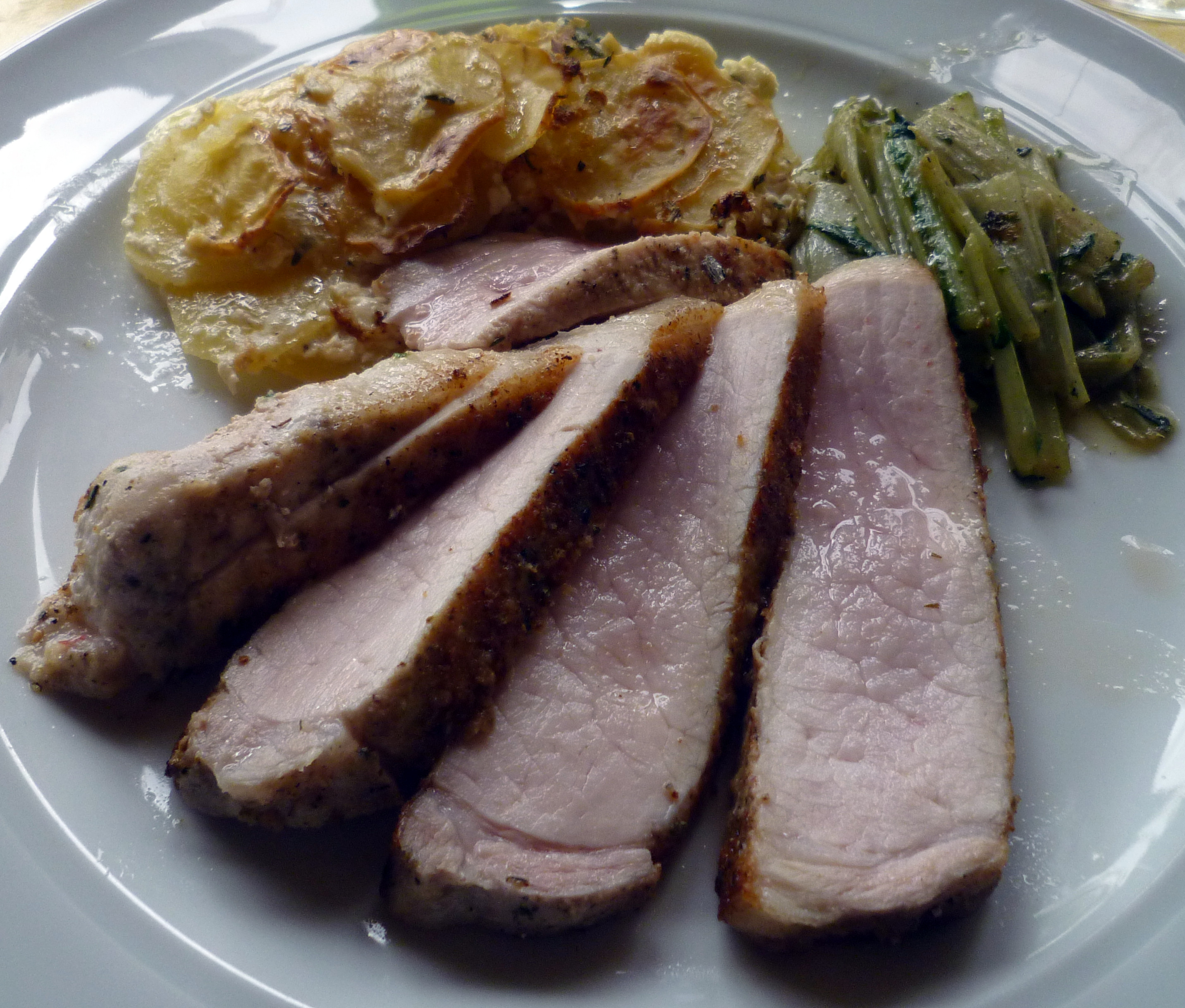 Veröffentlicht am 19. August 2014Sonntagsmenü 17.08.2014 Tatar von der Lachsforelle Lachsforelle, Rübstielblätter, Tomate Scheiben vom Kotelett, Kartoffelgratin, Rübstiel Käse aus der Normandie