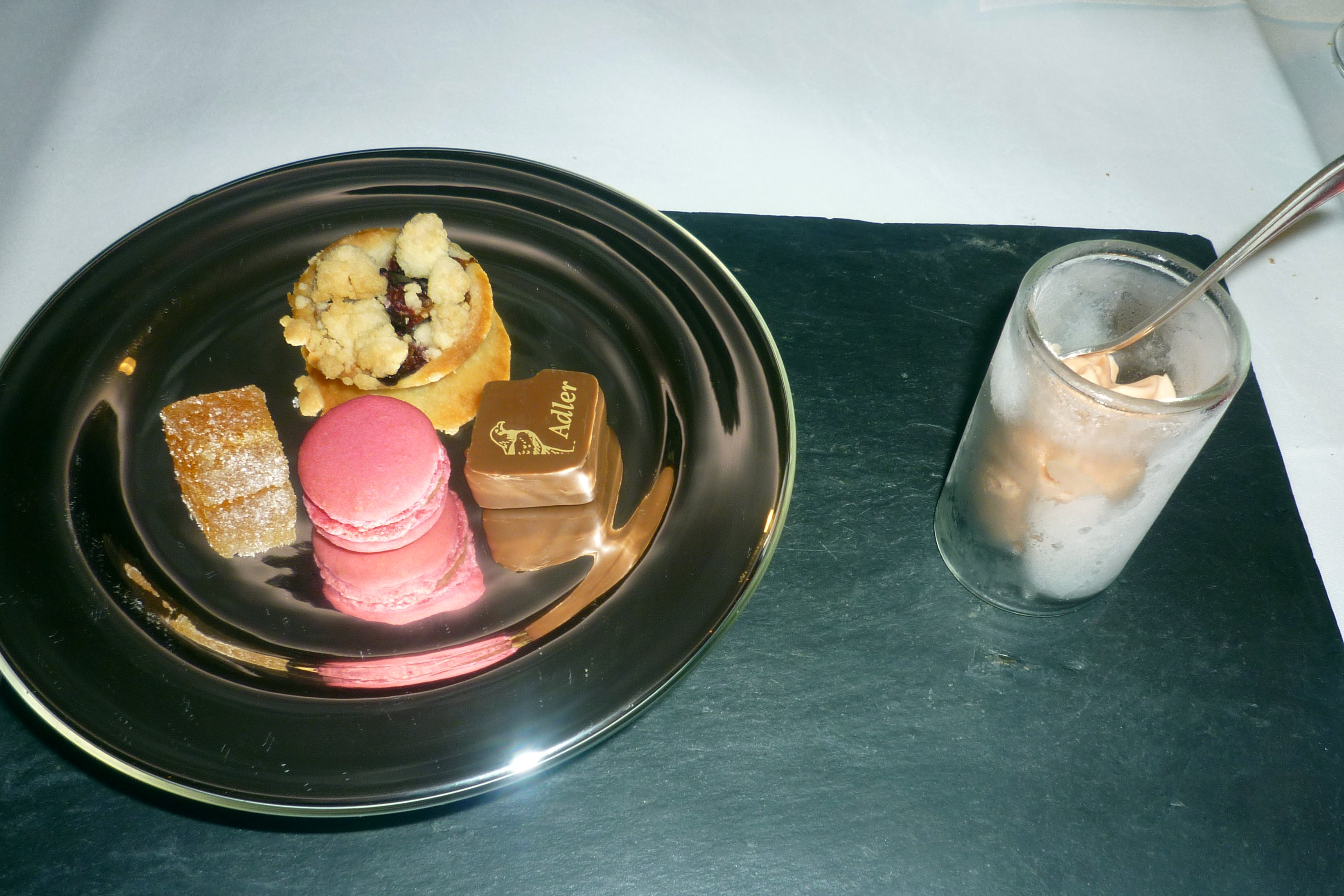 Feines Hausgebäck, dazu ein Espresso und eine Zibärtle alte Pflaume von der Brennerei Karle.