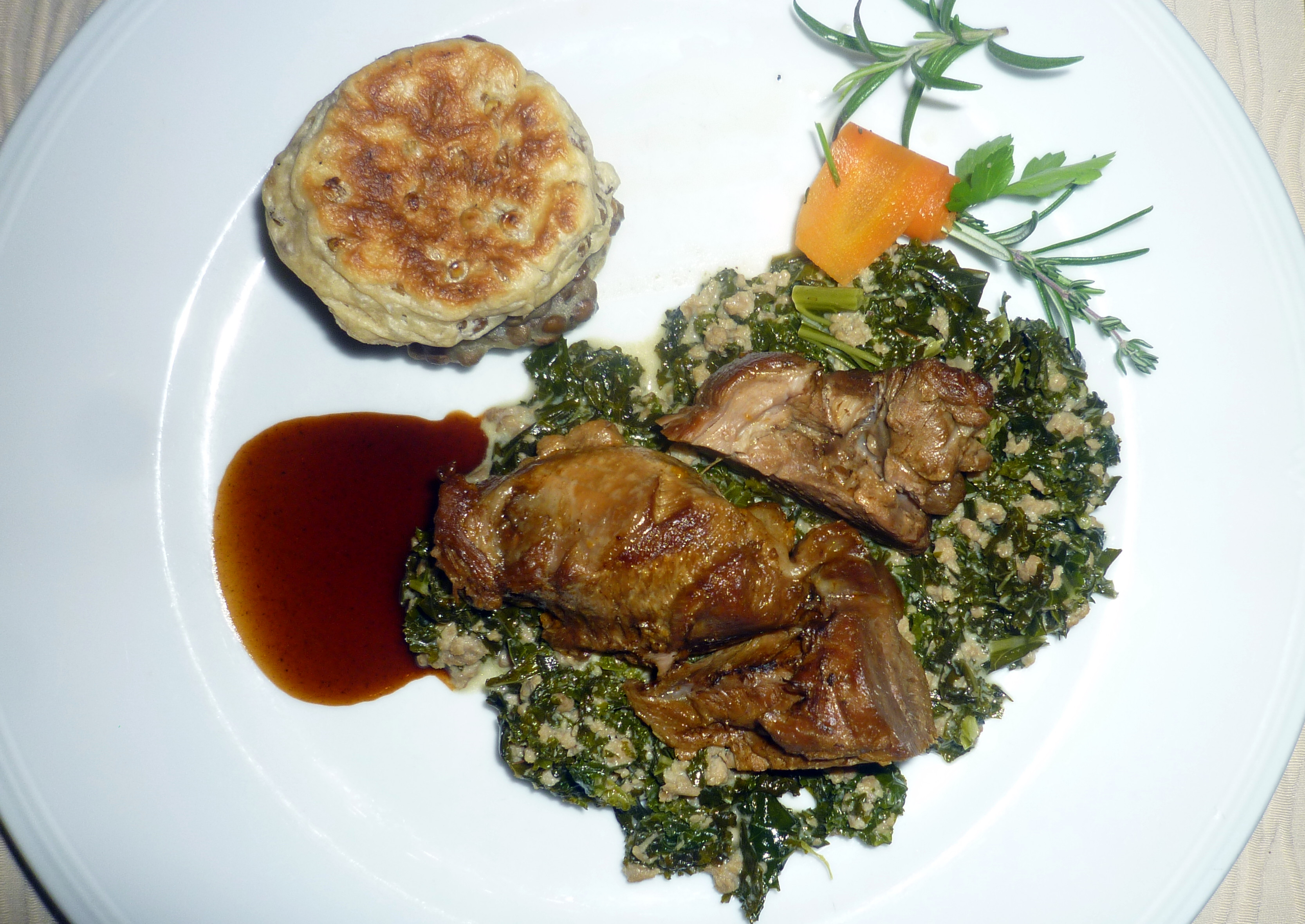 Geschmortes vom Rhönschaf mit Grünkohl, Blinis mit Alblinsen