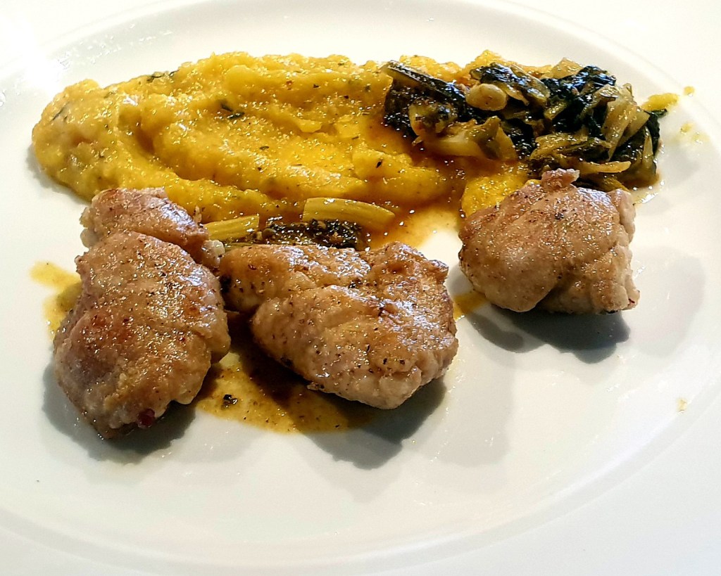 Dazu gibt es karamellisierte Karotten und Polenta.