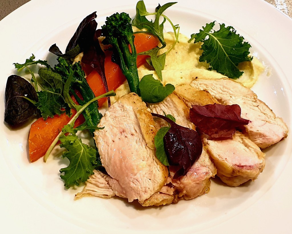 Zander: Den Zander Zurechtschneiden und ca. 150 gr. abwiegen. Die Haut mit einem scharfen Messer kreuzförmig einschneiden. Salzen, pfeffern und leicht mehlieren. In Butterschmalz auf der Hautseite anbraten. Damit sich der Fisch sich nicht wölbt eine Beschwerung darauflegen. Anschließend kurz die Innenseite garen, den Herd abstellen und auf der Hautseite fertig garen.