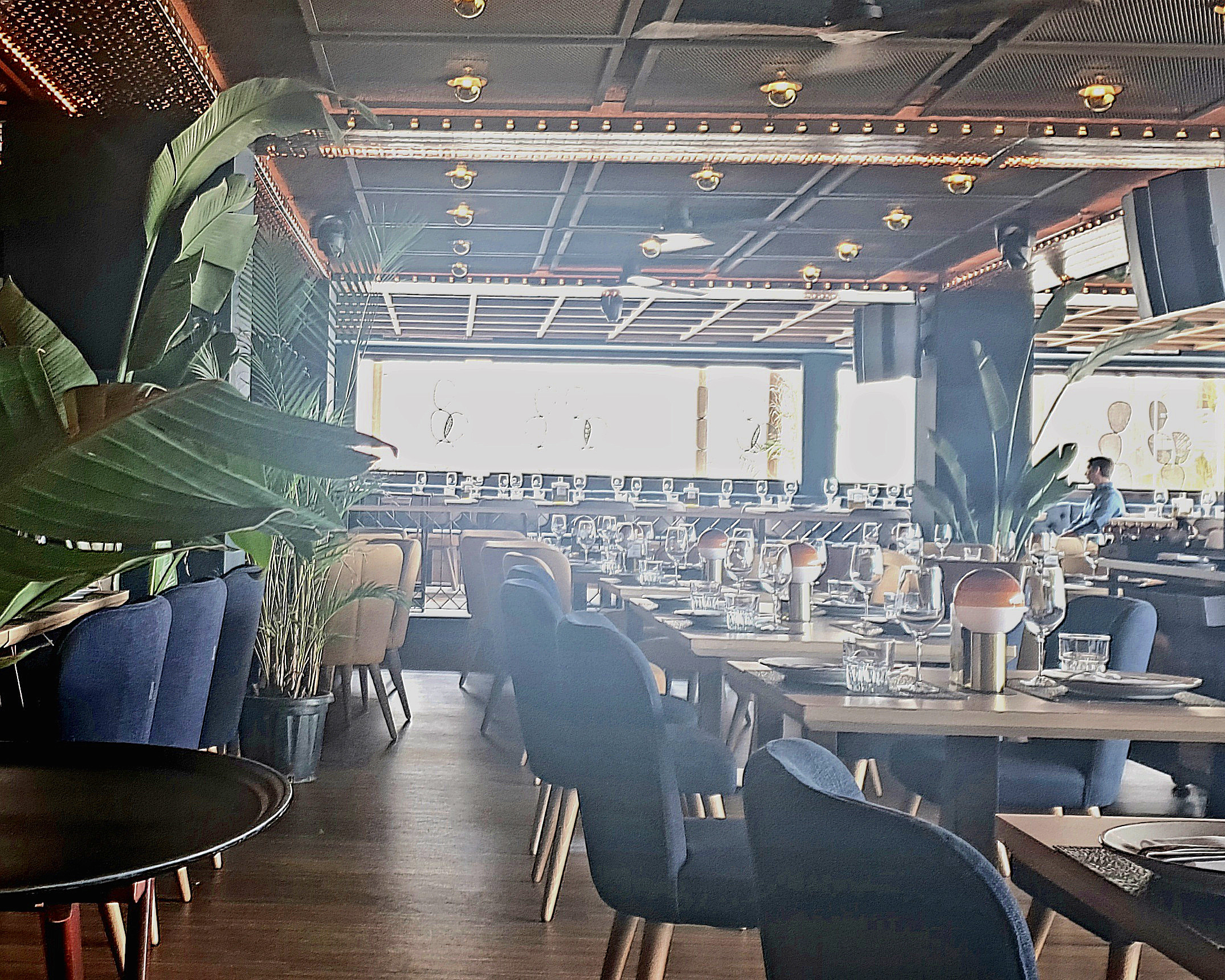 In Teilbereichen des ehemaligen Speisesaal des Hotels ist dieses recht stylisches Restaurant untergebracht. Auch hier dunkle Farben und dezentes Licht. Die gesamte Einrichtung ist dem Hotelstil angepasst. Das Restaurant ist vom Hotel selbst nicht direkt zu erreichen. Es bedarf einen kurzen Umweg über die Uferpromenade. Eine schöne Terrasse ist dem Restaurant vorgelagert.
