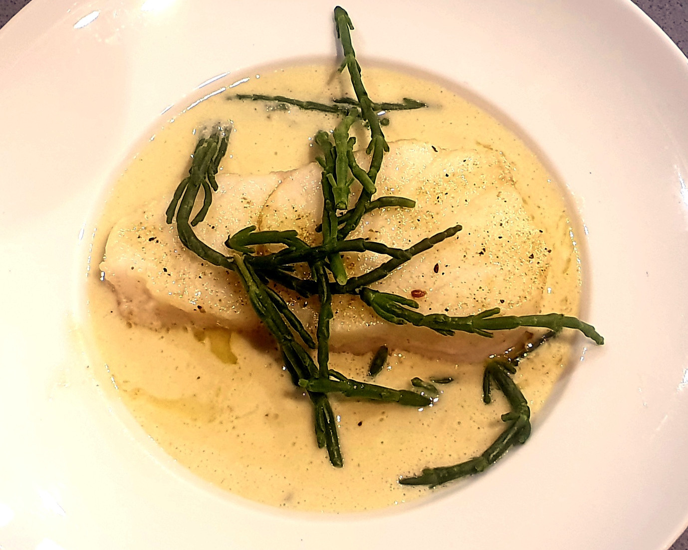 Kabeljau gebraten in einer Fenchelsauce dazu Queller.