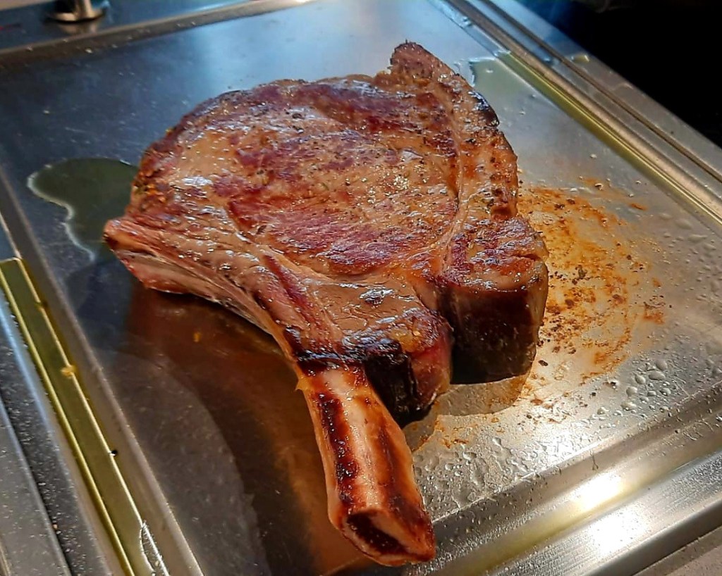 Ochsenkottelet ca. 6 Wochen gereift. Kerntemperatur 52°.