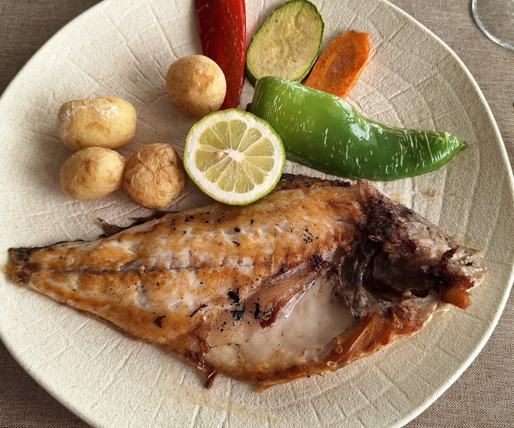 Auch am Dienstag hielt sich der Calima, wenn auch abgeschwächt. Am Spätnachmittag kehrten wir ins „Casa Antonio“ zurück. Irmtraud wollte unbedingt wieder einen ganzen Fisch essen. Die Wahl fiel auf eine Dorade, die geteilt wurde. Vorher gab es Garnelen in Knoblauch und frittierte kleine Tintenfische. Dazu einen Weißwein aus Lanzarote.