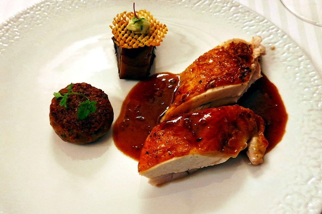 Geflügel aus Bresse (AOP) mit Estragonessig, Lyoner Kartoffeln