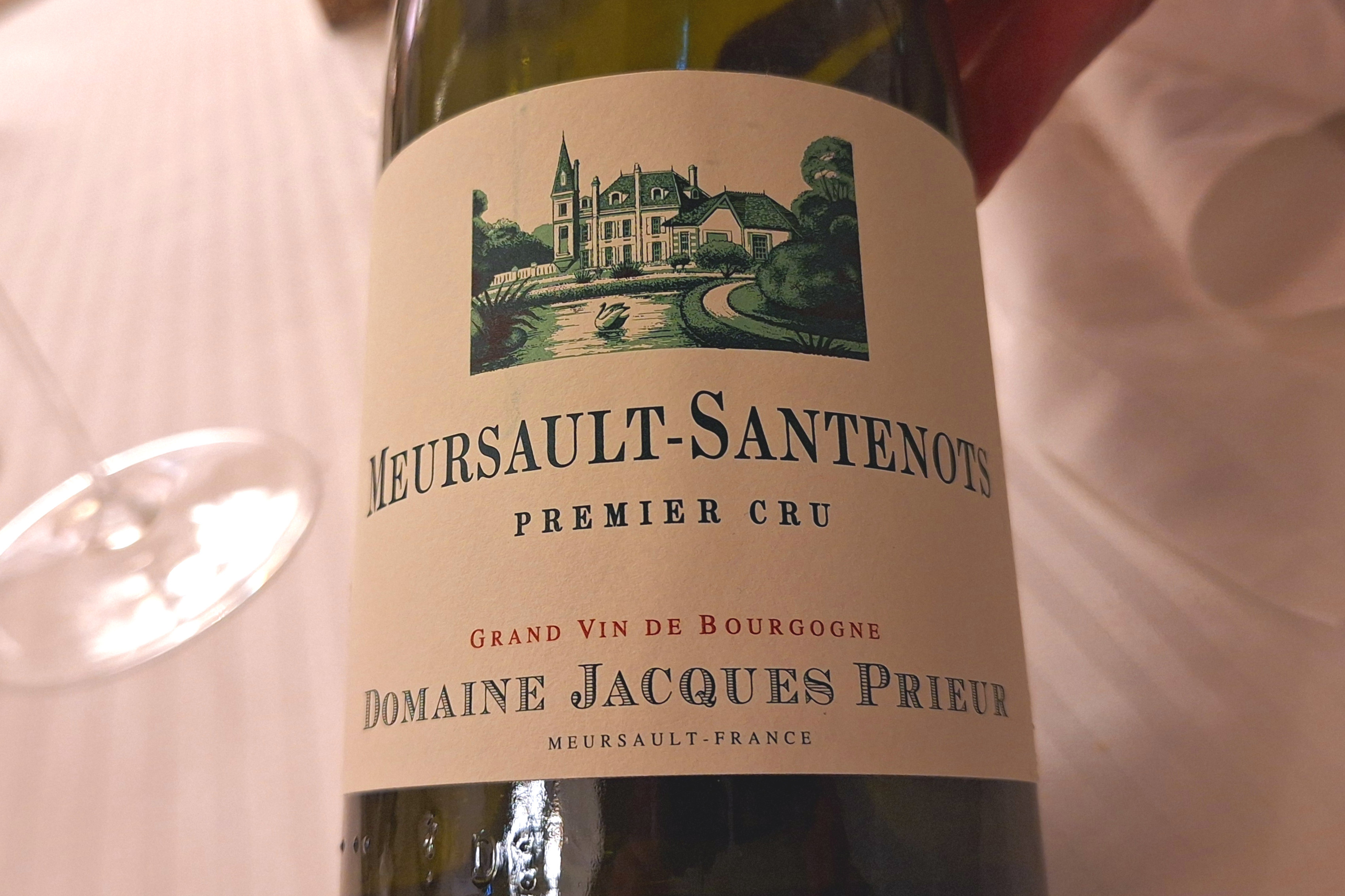 Wir beschlossen, uns auf einen Weißwein zu konzentrieren und zum Fleisch  ein Glas Rotwein zu nehmen. Ich blätterte kurz in dem Wälzer und entschied mich für eine Flasche 2018 Domaine Jacques Prieur Meursault 1er Cru Santenots. Den Rotwein, ein Hermitage 2021 Domaine du Colombier, schenkte man uns dann auch zum Käsegang ein.