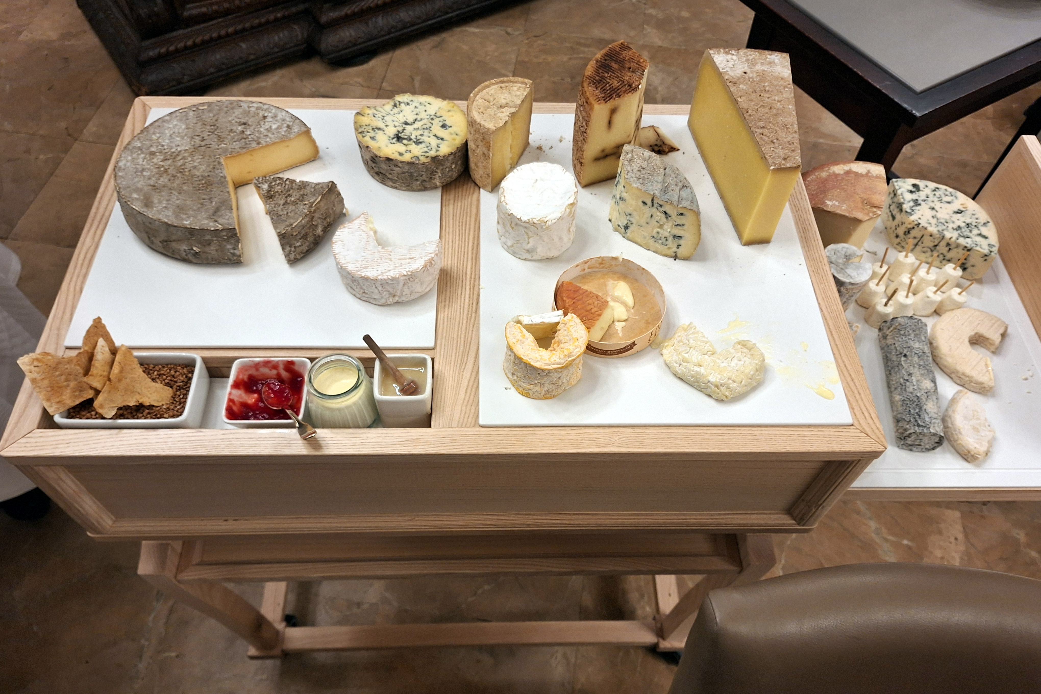 Ein seltener Genuss: Der Käsewagen wird vorgefahren. Aus den gereiften Sorten wähle ich drei regionale Spezialitäten. Der Service berät dabei kompetent und freundlich.