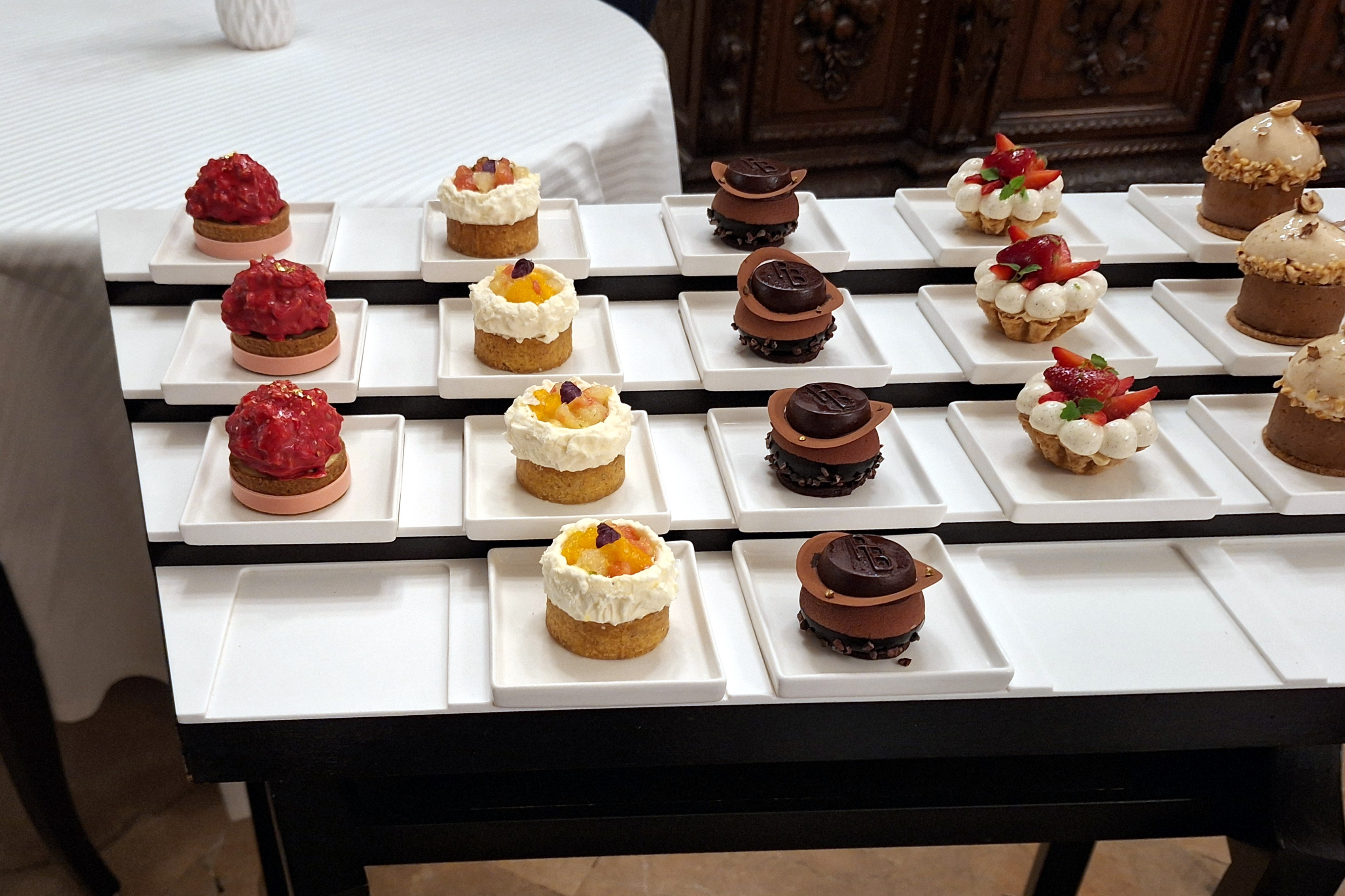 Auch der süße Abschluss des Menüs überzeugt. Ein kräftiges Schokoladentörtchen begeistert mit intensiven Aromen. Danach folgen ein Espresso und eine Mirabelle. Die Petit Fours lasse ich mir einpacken – ein schöner Ausklang.
