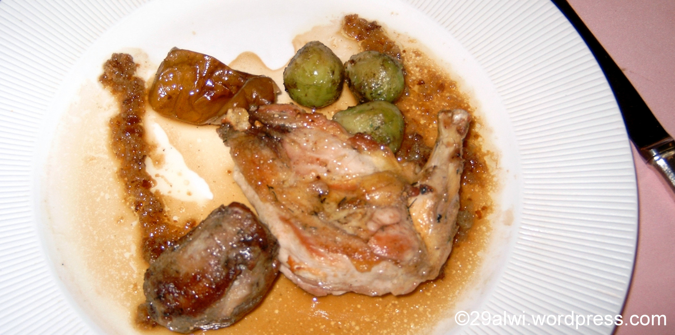 Auch hier vermissten wir die Gewürze, saftig der Schweinbauch, die Zuckerschoten als Süppchen serviert, außerdem verloren sich noch ein oder zwei? klein geschnittene Schoten auf dem Teller.