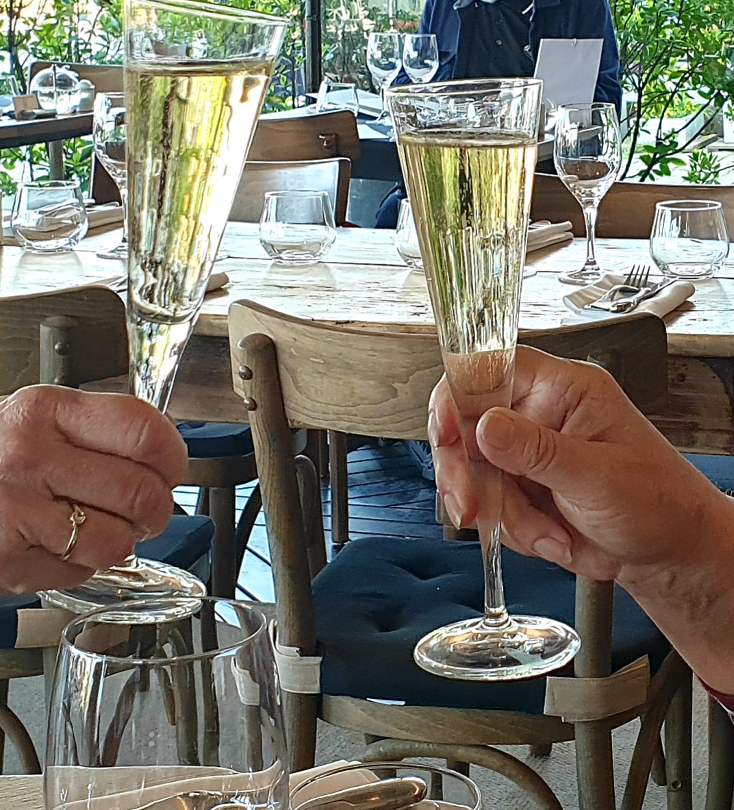 Das Mittagsmenü durften wir dann auf der Terrasse des Restaurants Platz nehmen und genossen ein mehrgängiges französisches Menü von 12:45 Uhr bis fast 17:00 Uhr. Besonders die Weinauswahl war ein Genuss für sich! Der Blick auf die Seine und die Pont de Brotonne war einfach herrlich.