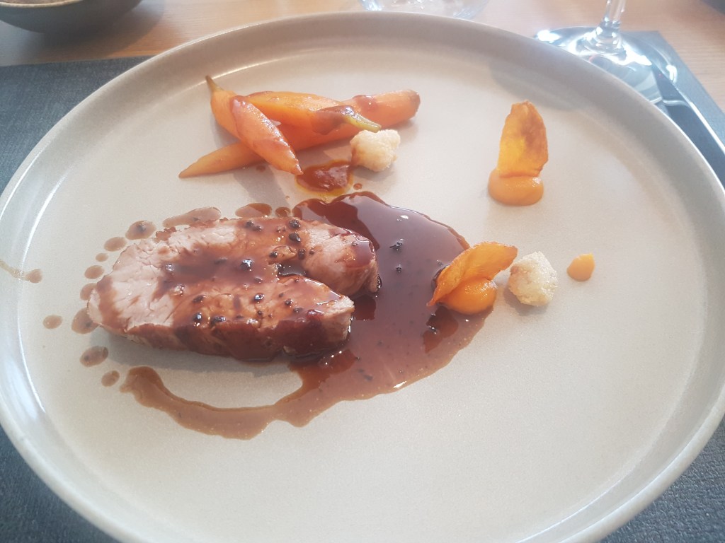 Das folgende Menü war dann wirklich sinnlich und überraschend! David liebt es zu experimentieren und präsentiert lokale Produkte immer aufregend anders. Ein Highlight war sicherlich die Variation von der Gänseleber, die diesmal mit Birne statt Apfel serviert wurde – einfach zart schmelzend. Auch die Ravioli gefüllt mit Leber und viel Trüffel waren ein Gedicht. Er legt wert drauf, dass die Foie gras nicht gestopft ist, er bezieht diese von einem Bio Bauern aus der Umgebung.
