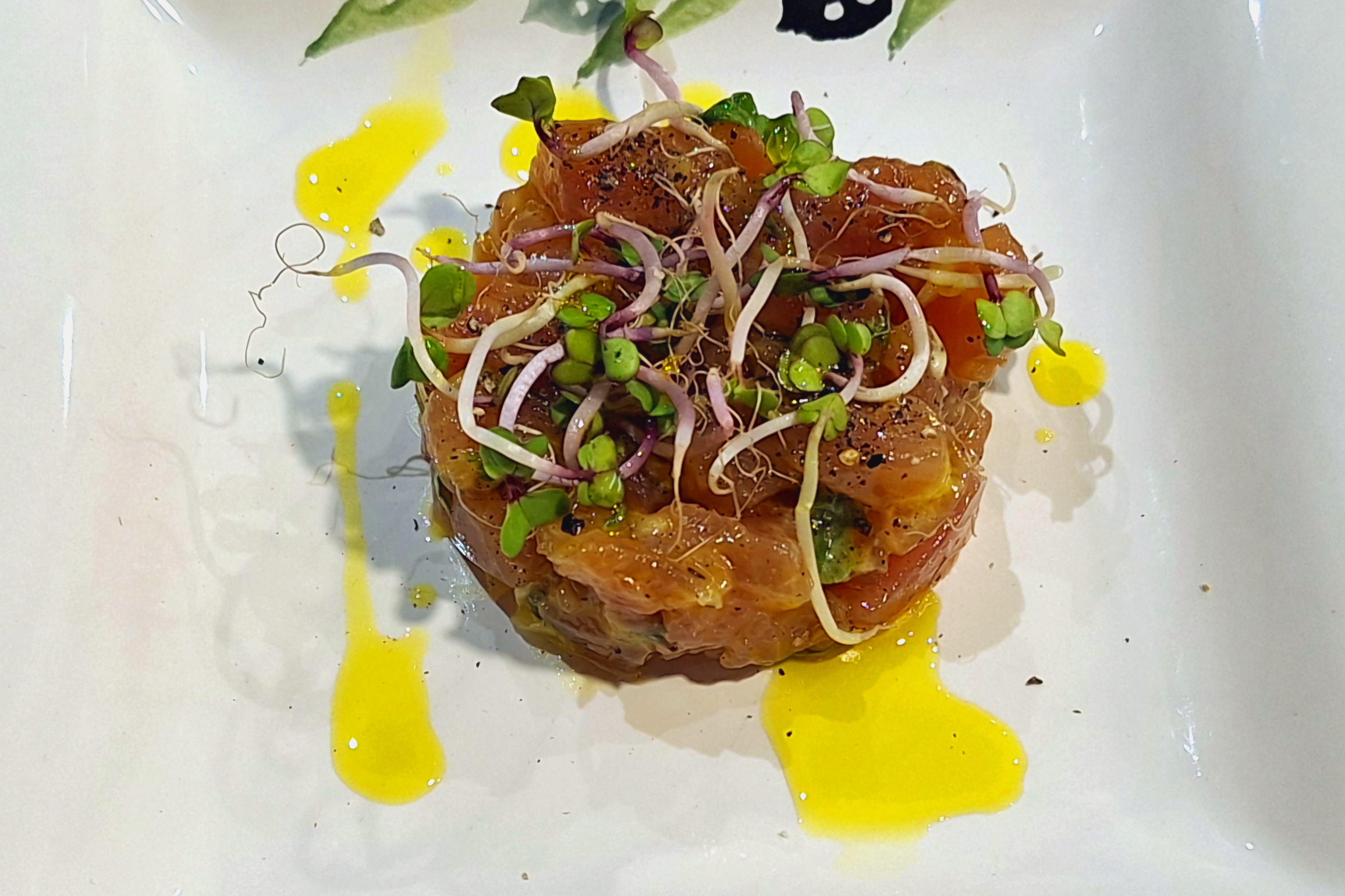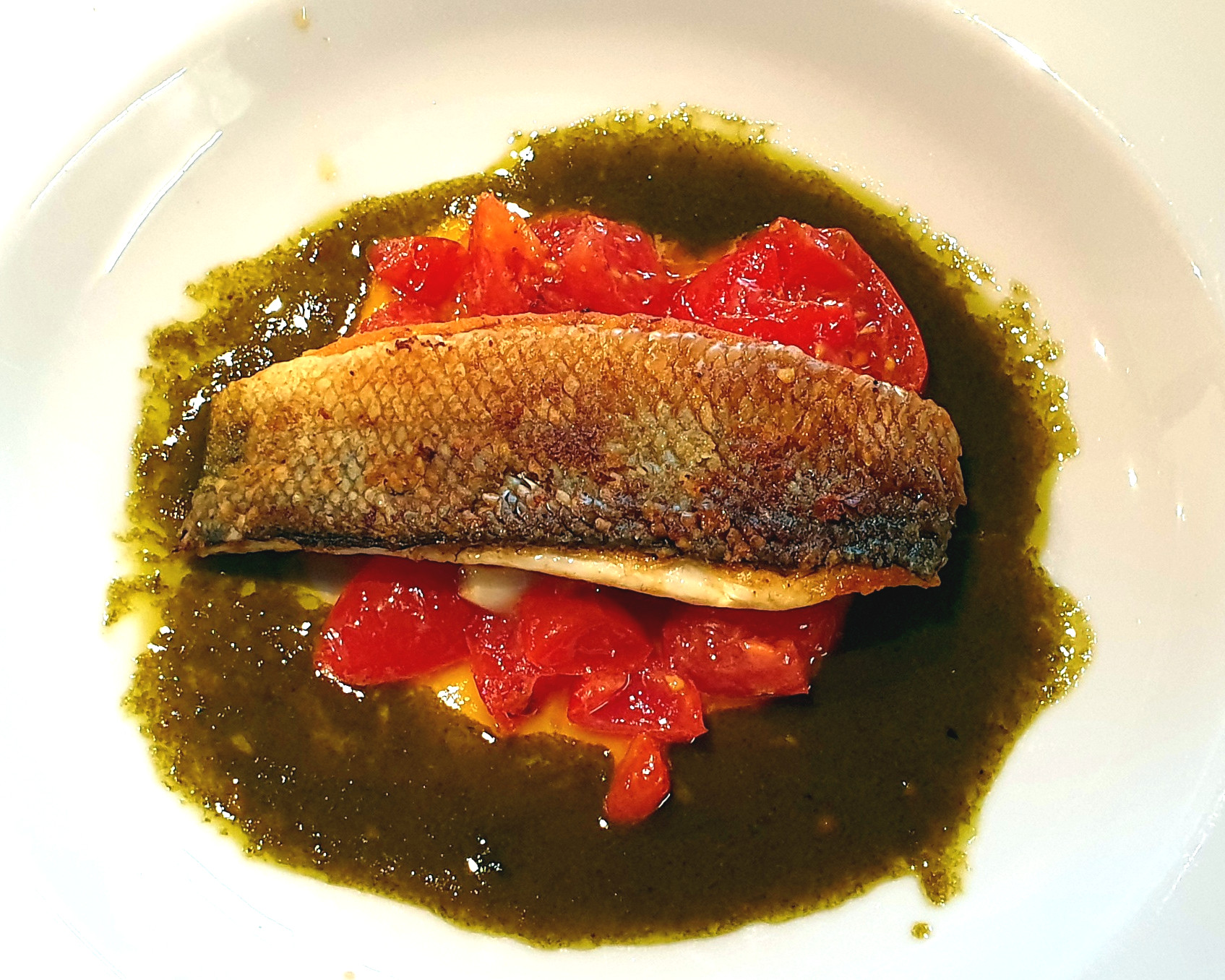 Der Auftakt begann mit Champagner und einer Sichuan-Pfefferblume als ersten Gruß aus der Küche. Danach kam eine überbackene Auster mit Kaviar – ein wahrer Gaumenschmaus. Es folgte Tomatenschaum mit Basilikum-Sorbet und Heilbutt, der einfach perfekt abgestimmt war.