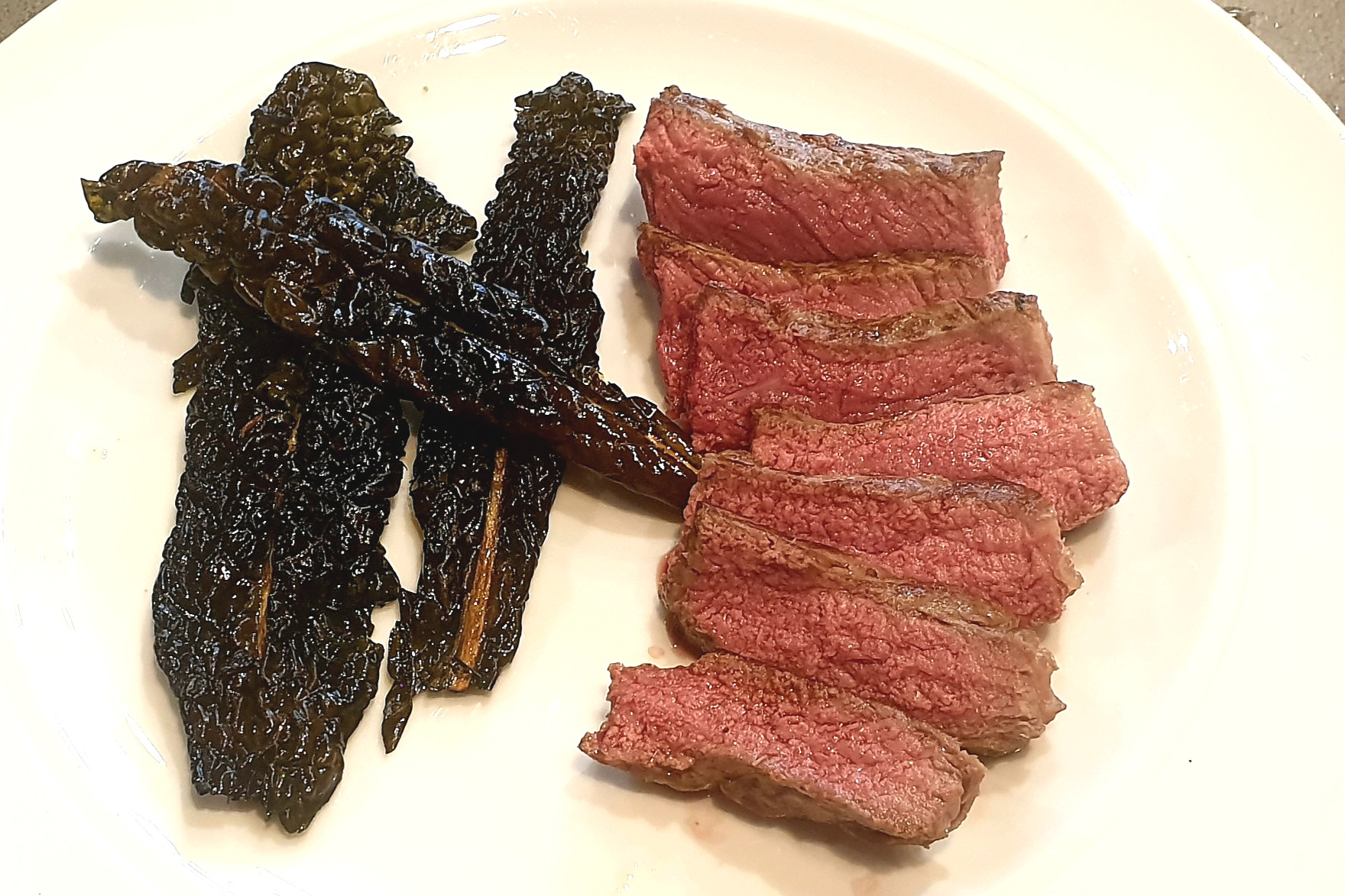 Ein weiterer Gang lieferte eine Schale mit 10-15 verschiedenen Gemüsesorten, passend zur Jahreszeit und mit reichlich Spargel. Auf die kalten Gänge folgte heißes Chawanmushi, garniert mit Kaviar, bevor der Fischgang mit grünem Spargel und einer intensiven Sauce auf den Tisch kam. Das für die Normandie typische Apfelsorbet rundete das Ganze ab. Bevor die Taube serviert wurde, gönnten wir uns noch eine Scheibe Wagyu Beef und eine ganze Trüffel – ein eher luxuriöses Vergnügen!