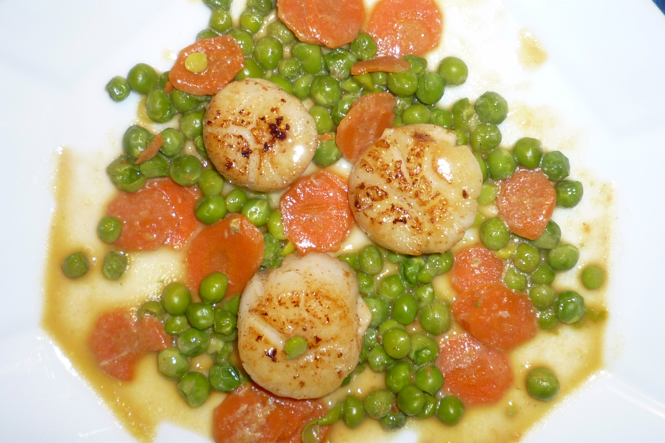 Echte Jakobsmuscheln sind hier schwer zu bekommen, daher entschied ich mich für Kamm-Muscheln, die ich auf dem Markt fand. Dazu gab es gebratenen Fenchel und eine Sauce aus Fischfond, Sahne und Gewürzen.