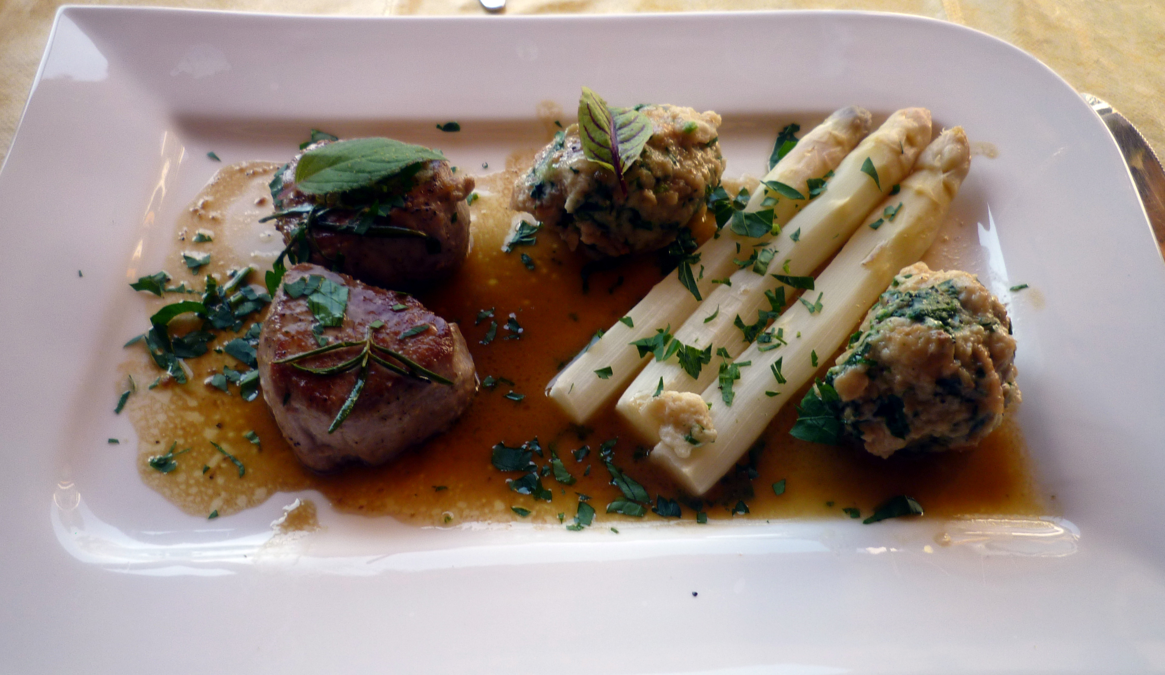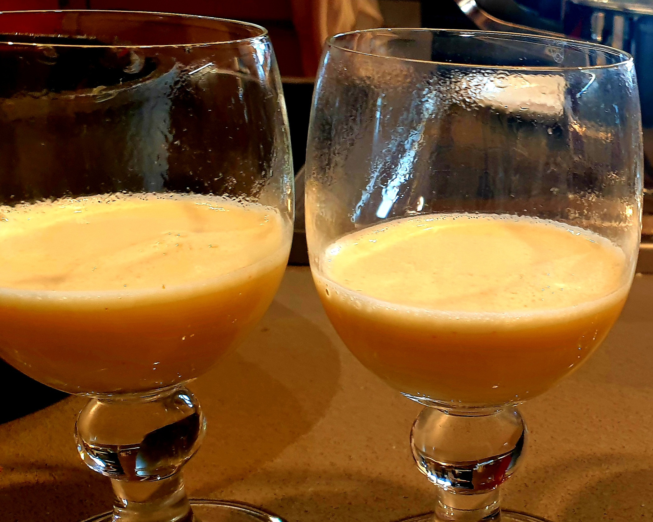 Spargelcremesüppchen im Stielglas, die Spargelschalen als „Resteverwertung“