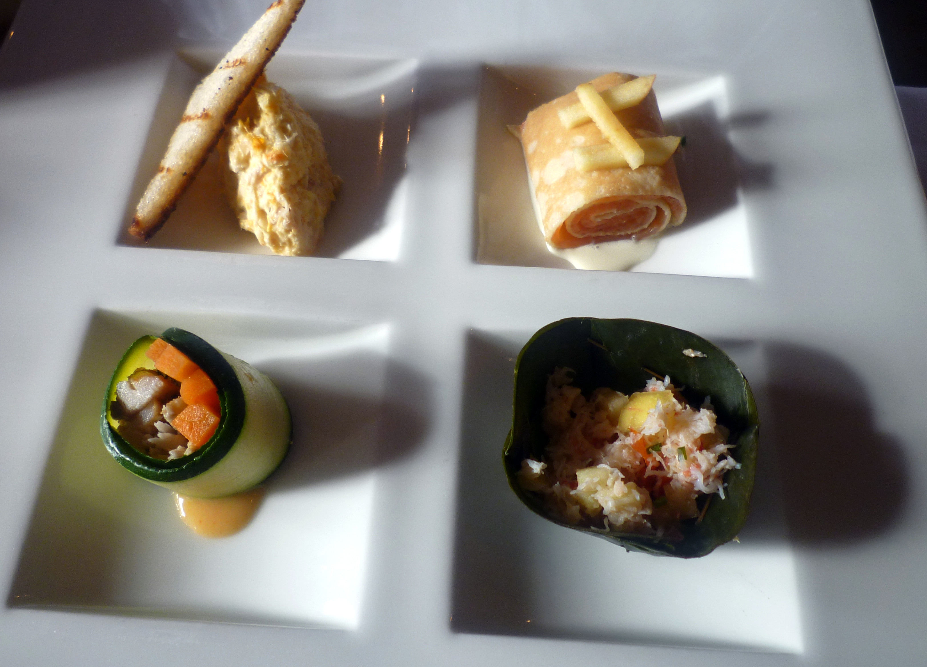 Mignardises autour de la mer (saumon fumé, haddock , chair de crabe, maquereau)