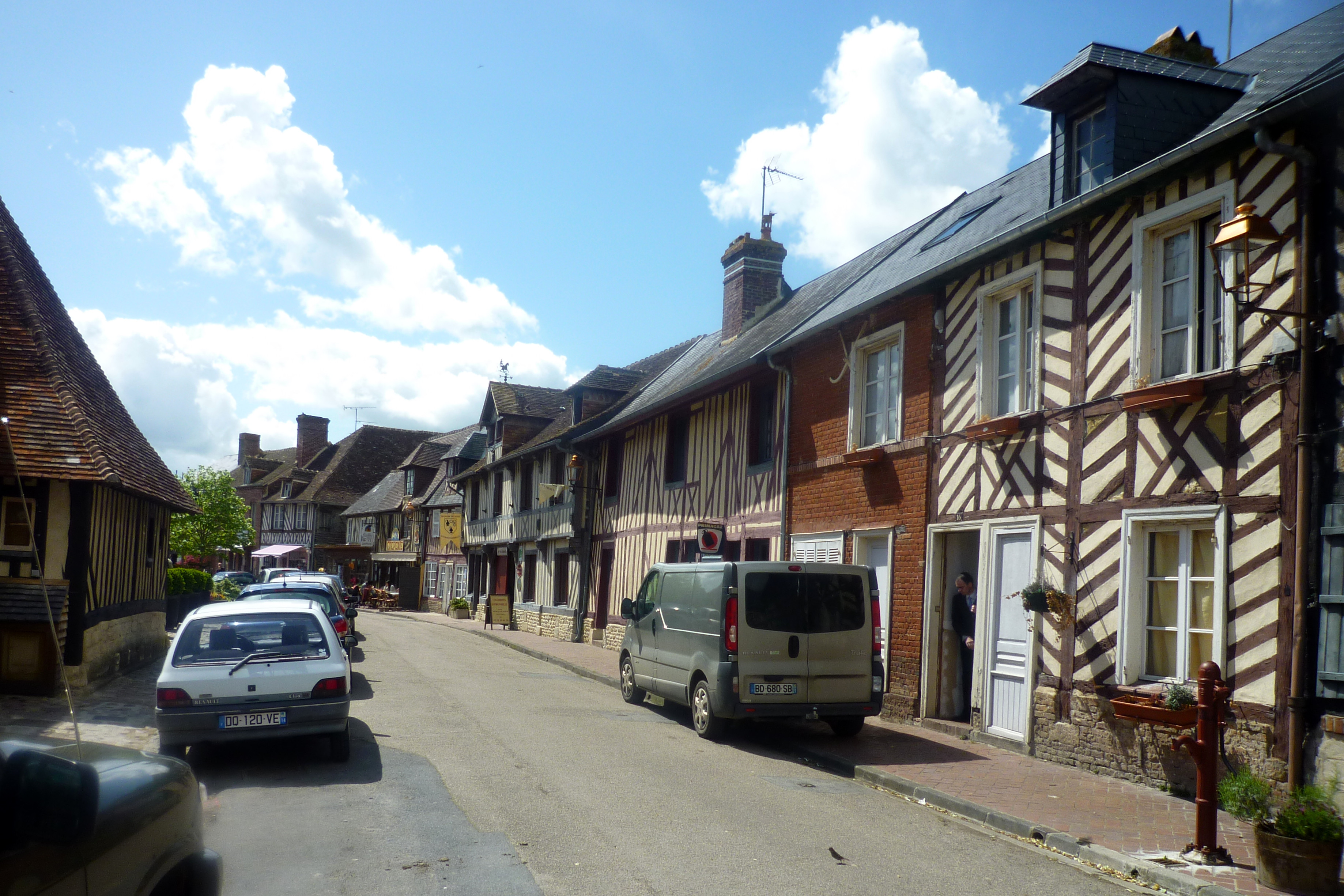 Diese Gemeinde hat gerade einmal 240 Einwohnern, gehört aber zu den schönsten Dörfern Frankreichs. Fachwerkhäuser aus dem 17. und 18. Jahrhundert säumen die kleine Dorfstraße. Mitten im Ort die restaurierte Markthalle. Hier ist unter anderen auch das Sterne Restaurant „le Pavé d’Auge“ untergebracht. Wir haben dieses Restaurant in den letzten Jahren einige Male besucht. Aus Zeitgründen mussten wir allerdings diesmal auf die gute normannische Küche verzichten.