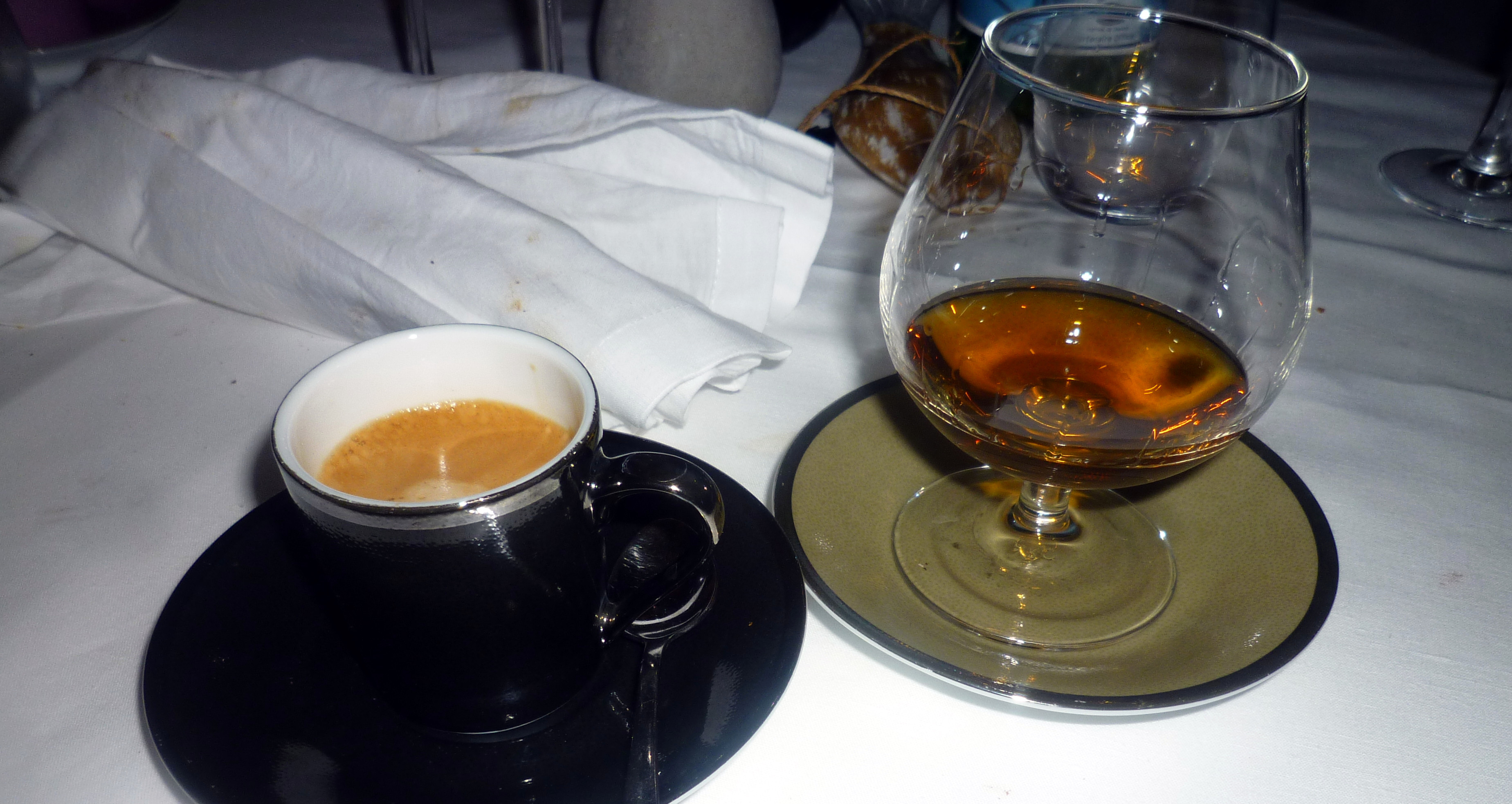 Zwischen jeden der Gänge schenkte Andre einen von seinen Vater selbst gebrannten Calvados ein. Die Jahrgänge wurden immer älter. Ein Kaffee und ein Calvados Jahrgang 1944 beendeten das Abendessen.