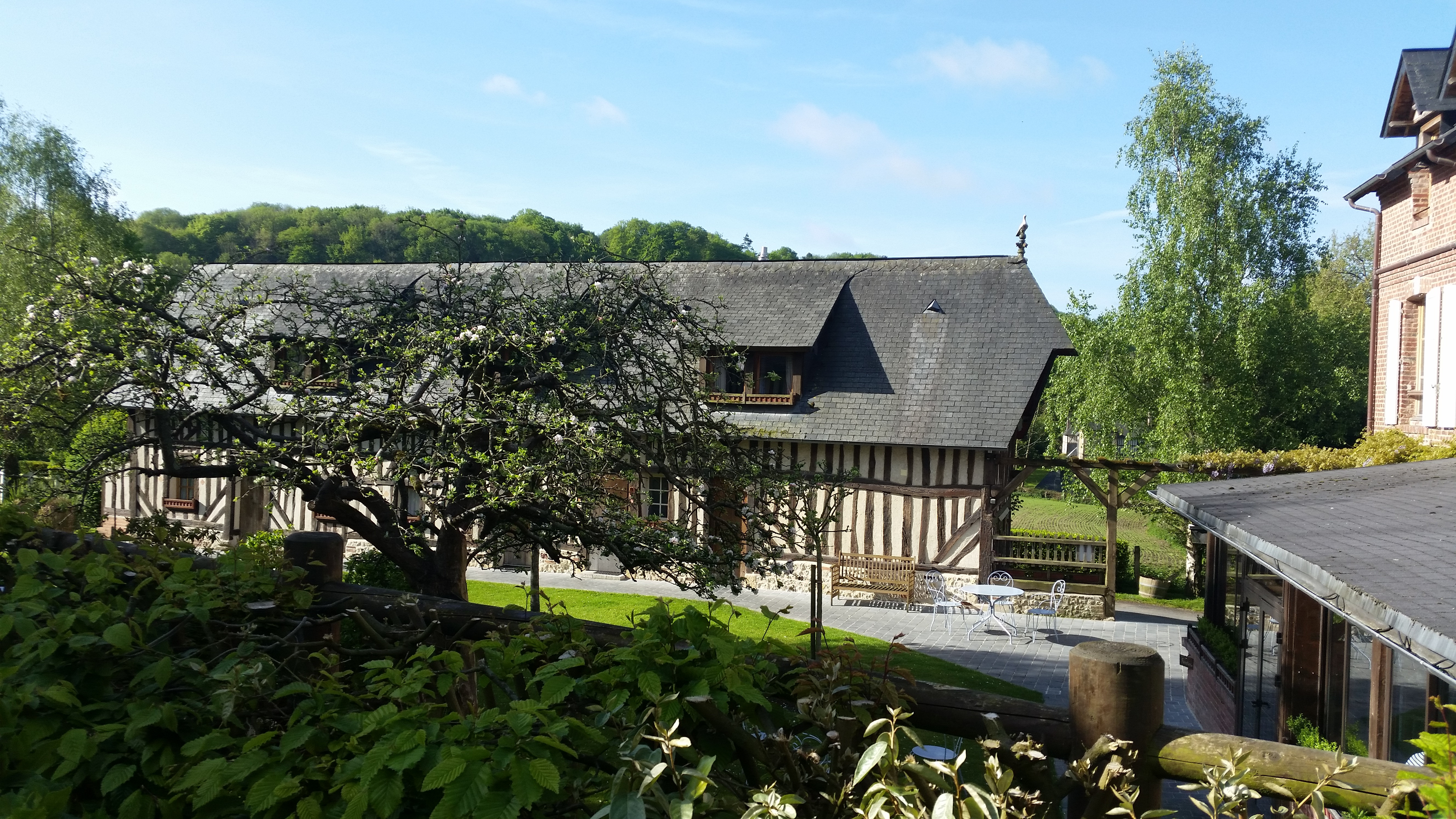 Eingebettet am Rande eines Waldes im  Dörfchen Barneville-la-Bertran, nur 5 km von Honfleur  entfernt, steht das Hotel-Restaurant „Auberge de la Source“. Die Auberge besteht aus dem Hauptgebäude und mehreren Nebengebäuden. Die Rezeption und das Restaurant befinden sich im Hauptgebäude. Ein schön gestalteter Garten mit blühenden Apfelbäumen und einem kleinen Bach mit Teich verspricht absolute Ruhe. Das ehemalige Bauernhaus aus dem 18. Jahrhundert wurde anscheinend in den letzten Jahren saniert.