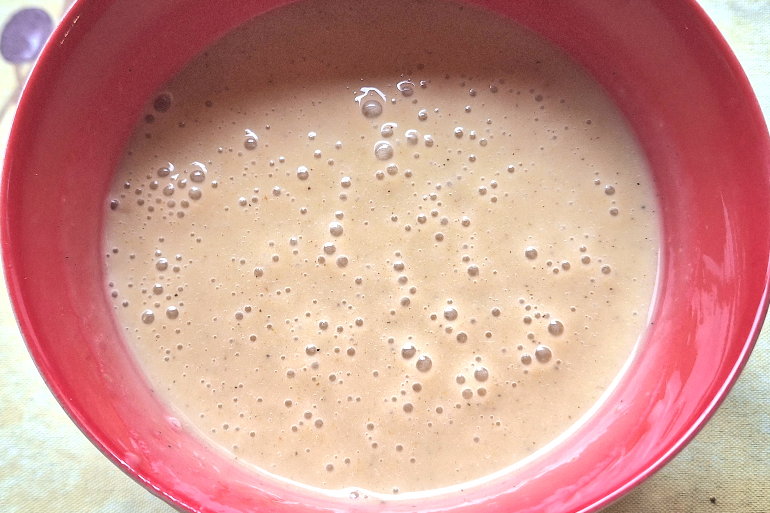 Vor dem Servieren die Suppe nochmals abschmecken und mit einem Stabmixer auf Mixen. Serviert wird in einer Suppentasse.
