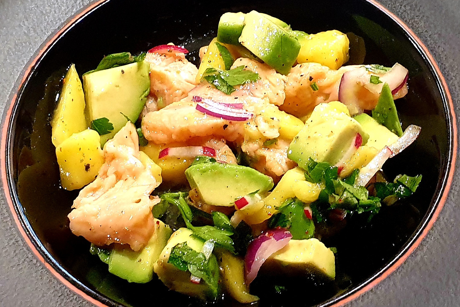 Das Highlight des Abends war das Ceviche, serviert in zwei Variationen. Die klassische Version überzeugte mit zartem Weißfisch, mariniert in Limettensaft, verfeinert mit roten Zwiebeln, Koriander und feurigen Chilischeiben. Süße Süßkartoffelwürfel und knusprige Maiskörner setzten harmonische Kontraste.