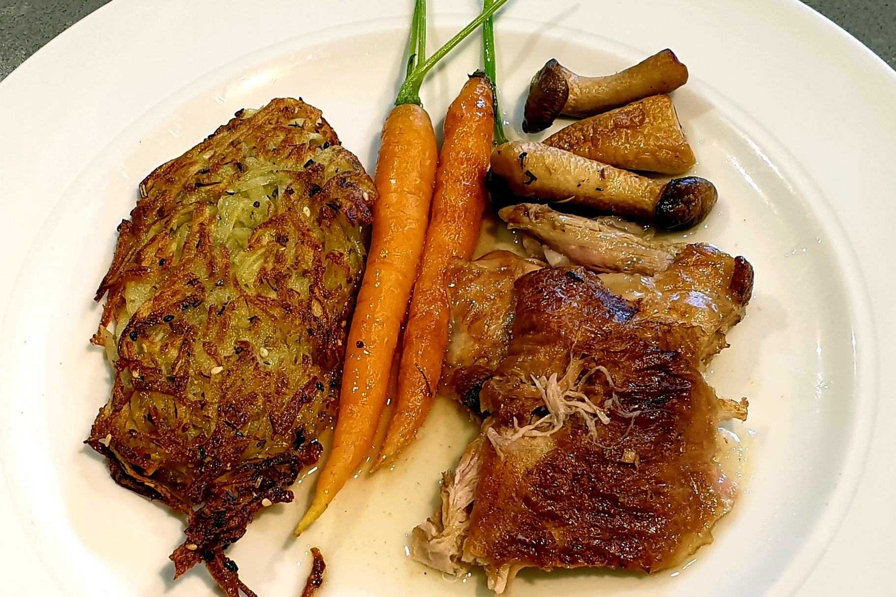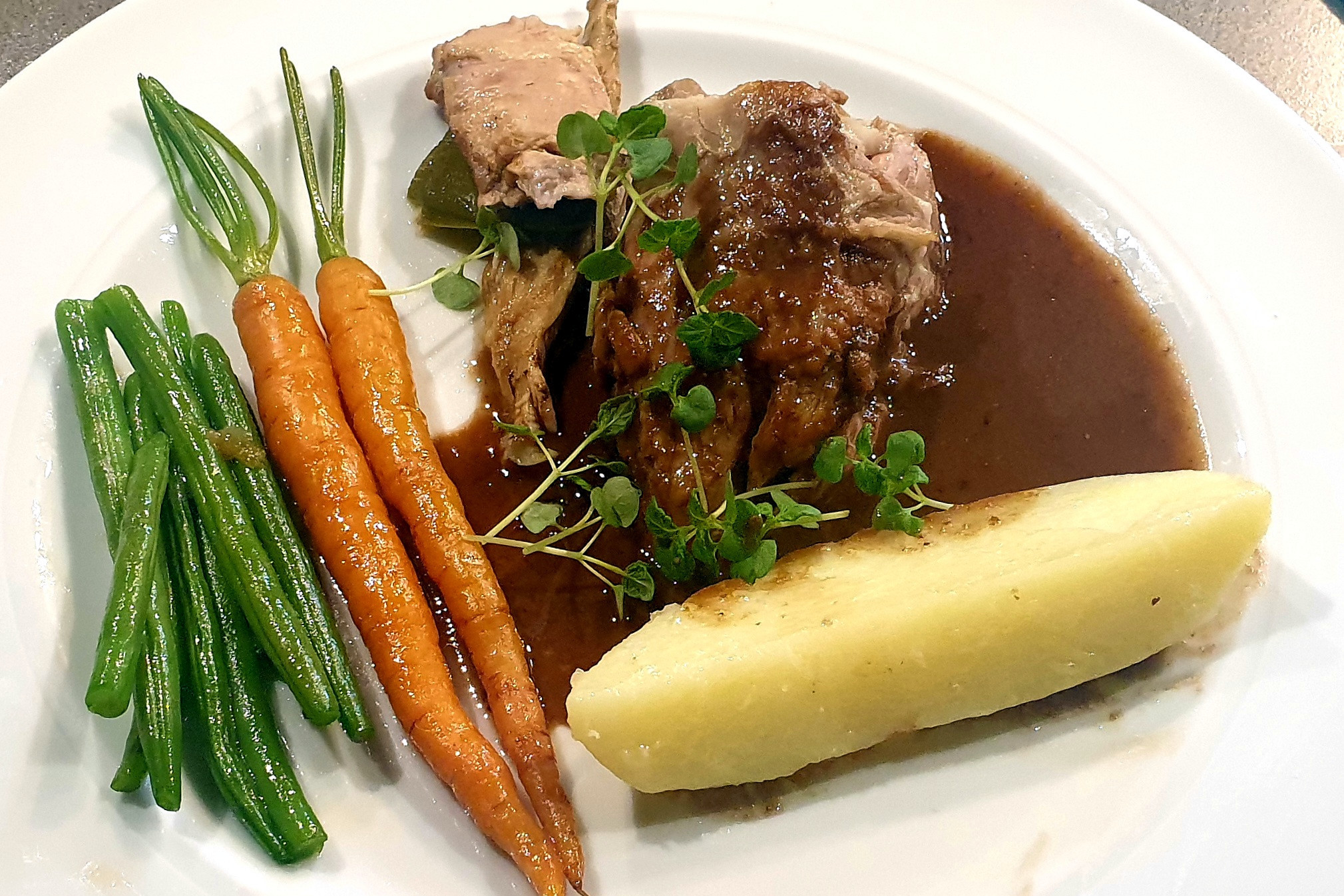 Zickleinragout aus der Keule. Danach noch Käse(ohne Bild)