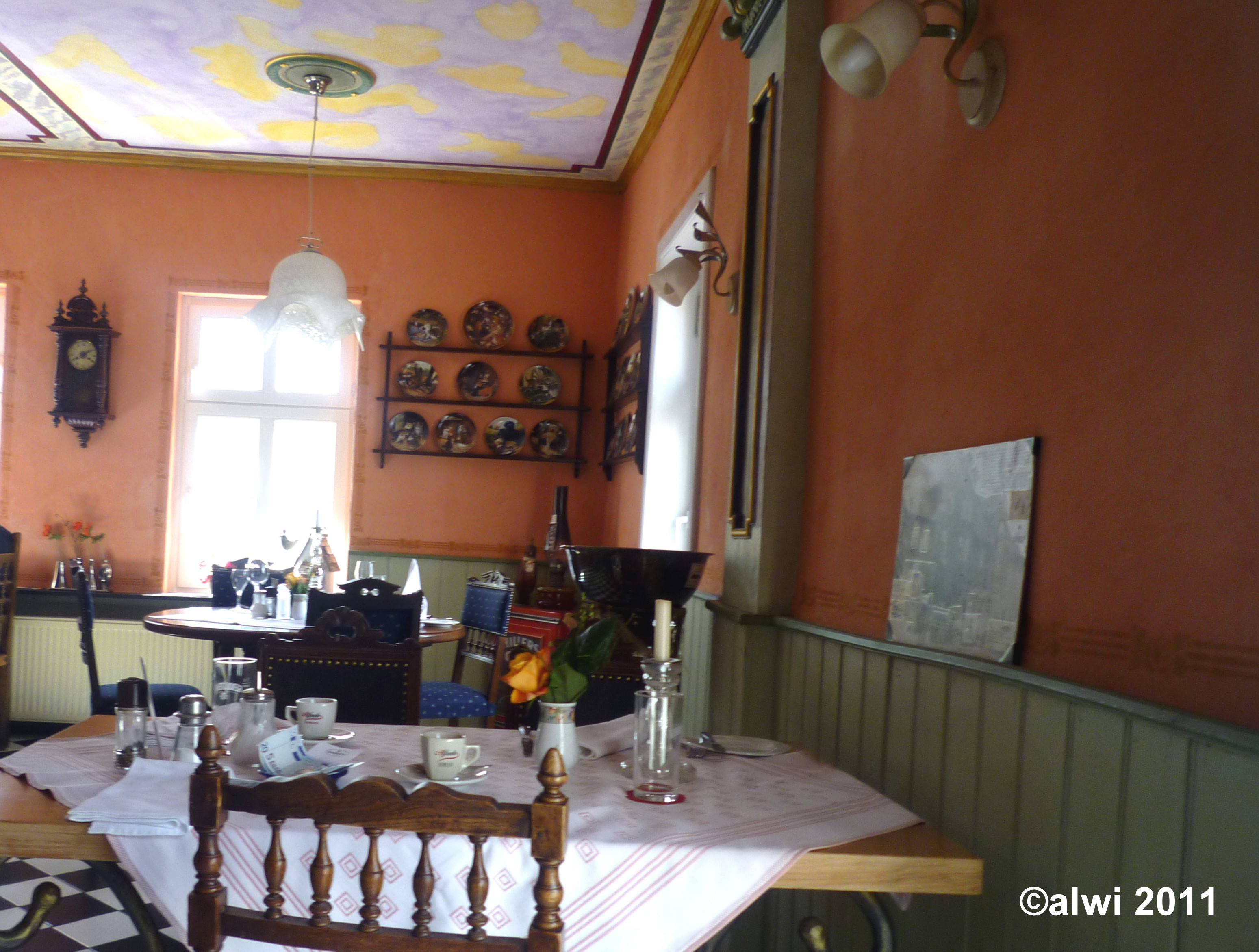 In den vier verschiedenen Speiseräumen sitzt man recht gemütlich. Im Raum 1 mit kleiner Theke können ca. 16-20 Personen sitzen. An diesem Abend war das Haus gut besucht. An den Autokennzeichen war zu erkennen, dass der Gasthof auch überregional bekannt ist.
